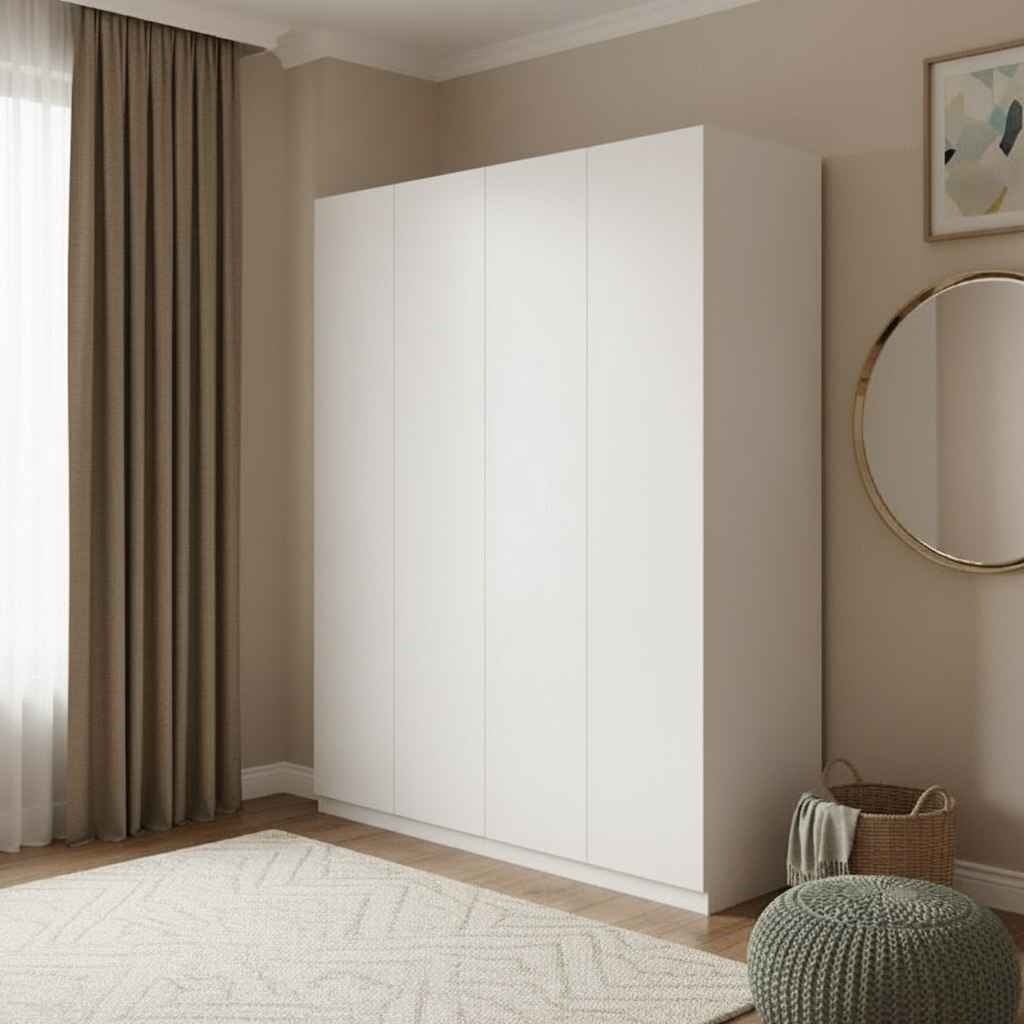 Белый 4-х створчатый шкаф станет практичным решением для хранения одежды и аксессуаров.