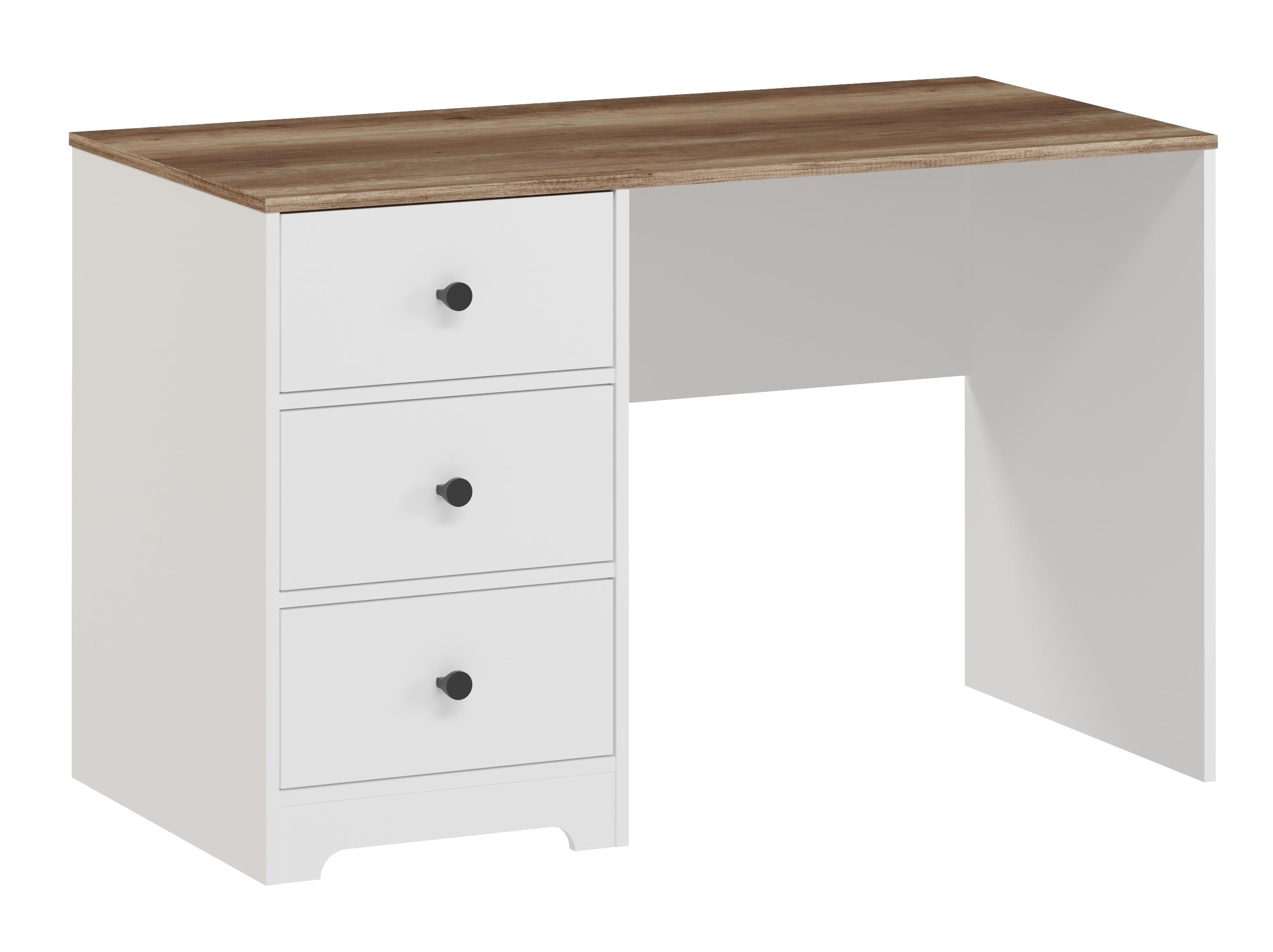 В стол встроены три выдвижных ящика на направляющих скрытого монтажа с ДОВОДЧИКАМИ.