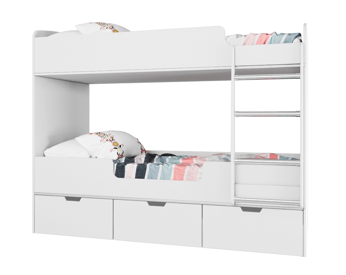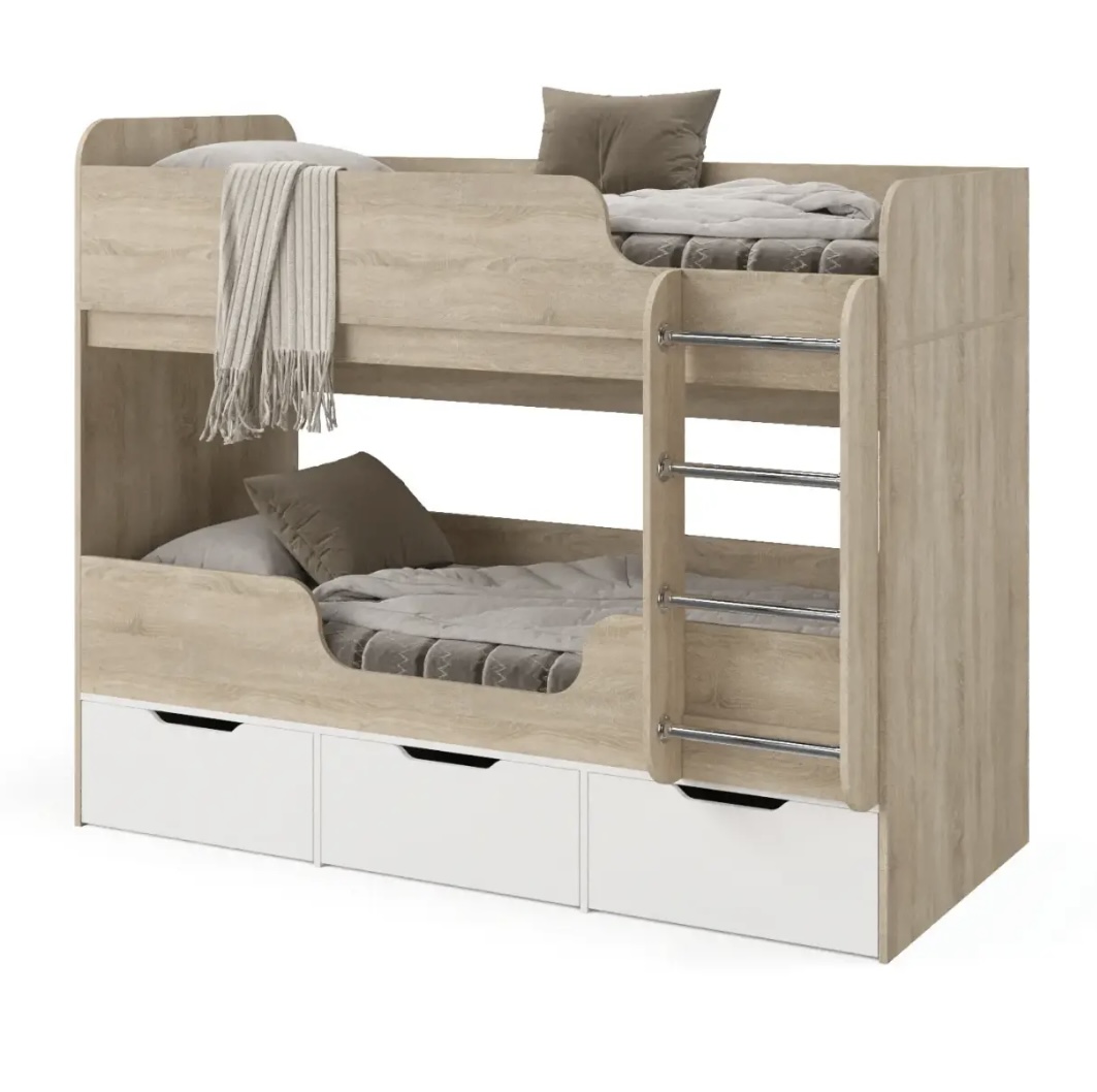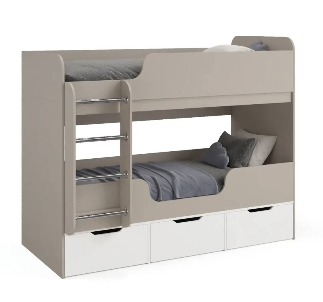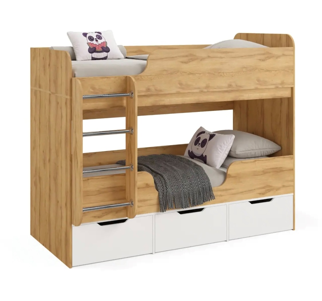 Прочная конструкция кровати выдерживает нагрузку до 90 кг на каждое спальное место.