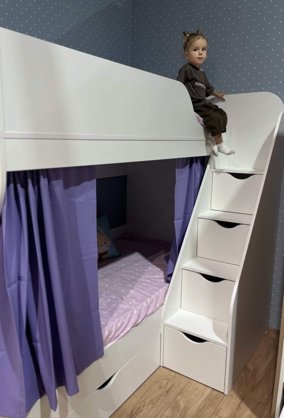 <comment>Долго мониторила интернет, прежде чем выбор пал на Династию кидс. Выбрала вот такую модель с другой лестницей. Дочки счастливы! </comment>
