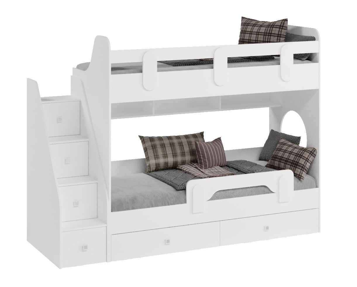 Два выдвижных ящика нижней кровати с прочным дном из ЛДСП 16 мм (не ДВП, не ХДФ!) выдерживают нагрузку до 45 кг.