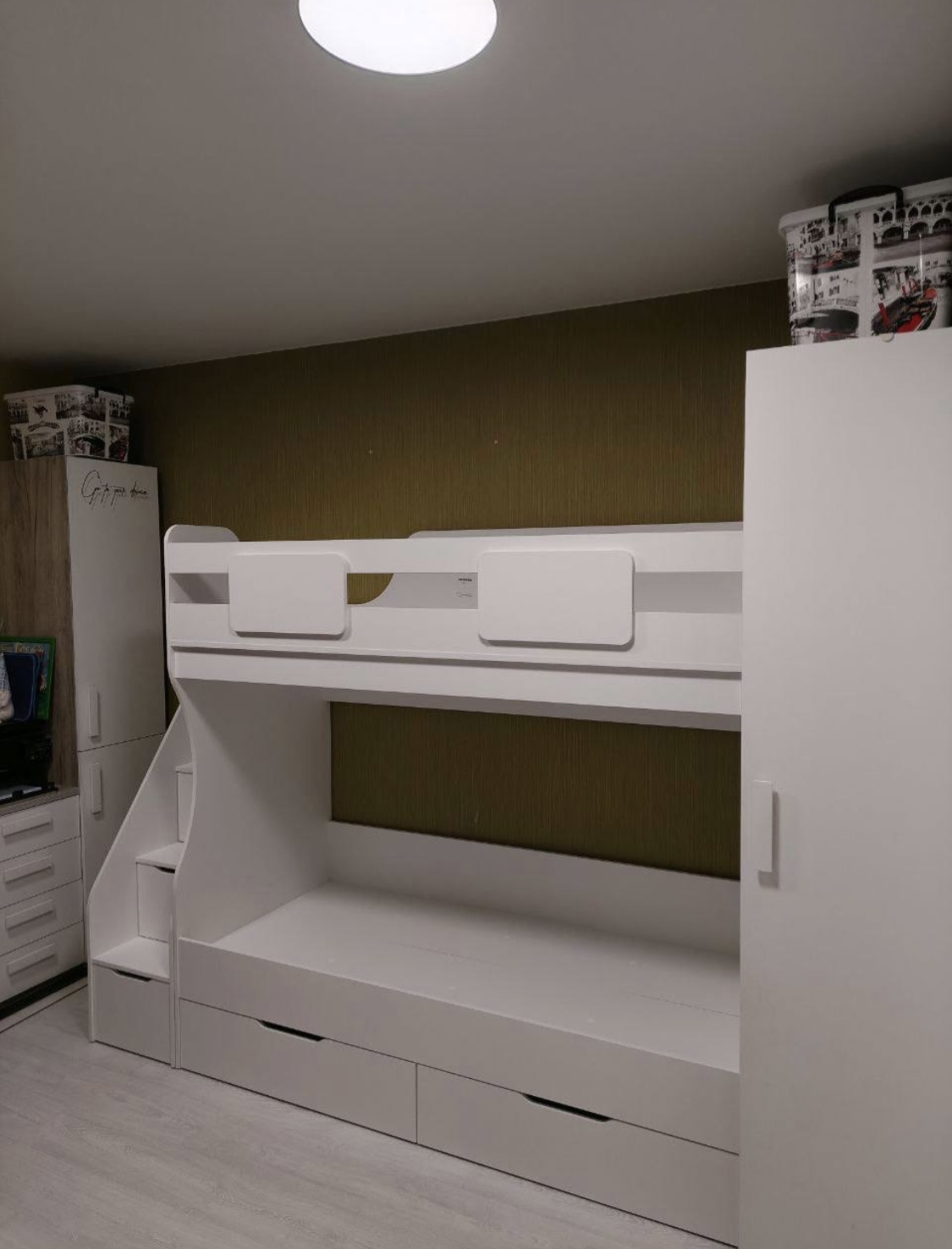 Вместо них - цельный и прочный настил из ЛДСП, который выдерживает сверхвысокую нагрузку и позволяет расположиться даже взрослому с ребенком.