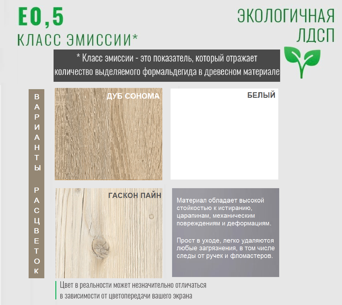 Материал: сертифицированное, качественное, экологически чистое ЛДСП класса Е0,5
