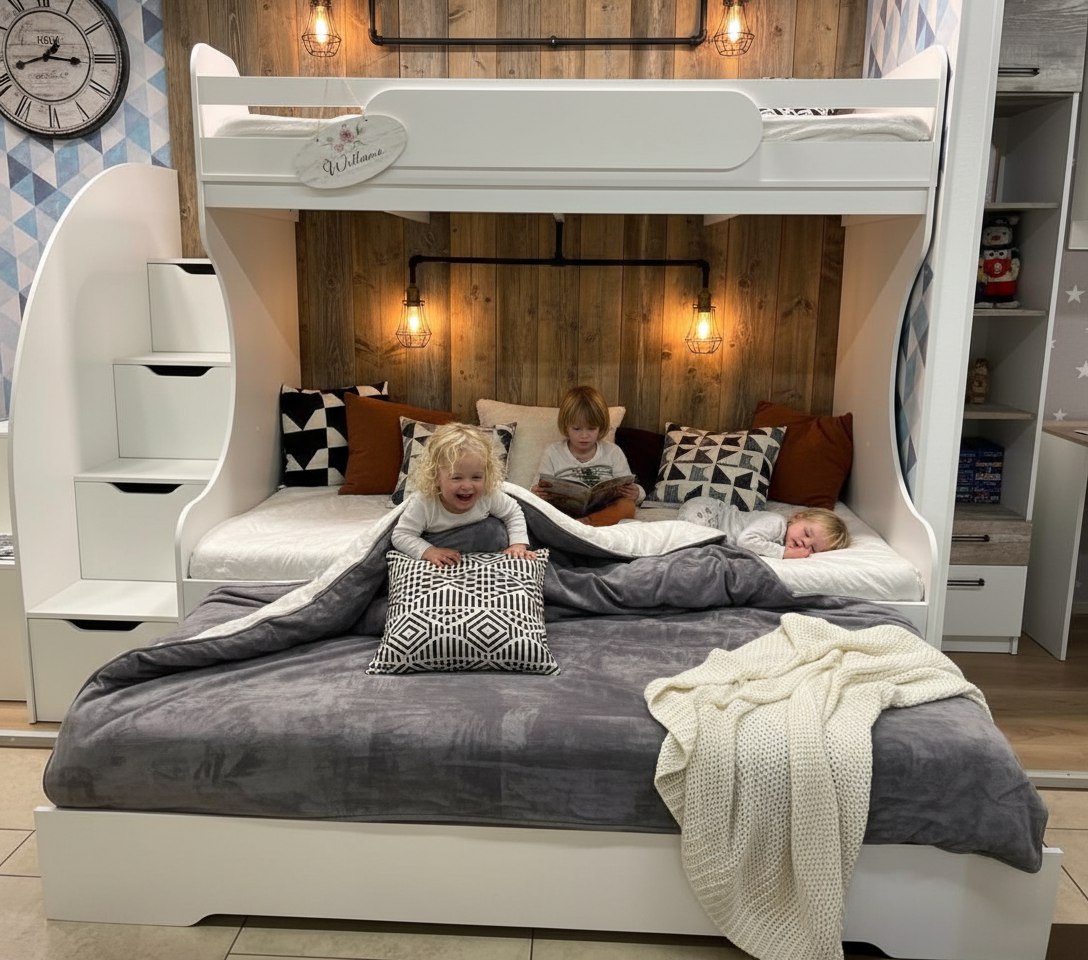 Увеличенное, просторное нижнее спальное место позволяет комфортно разместиться ребенку вместе со взрослым.