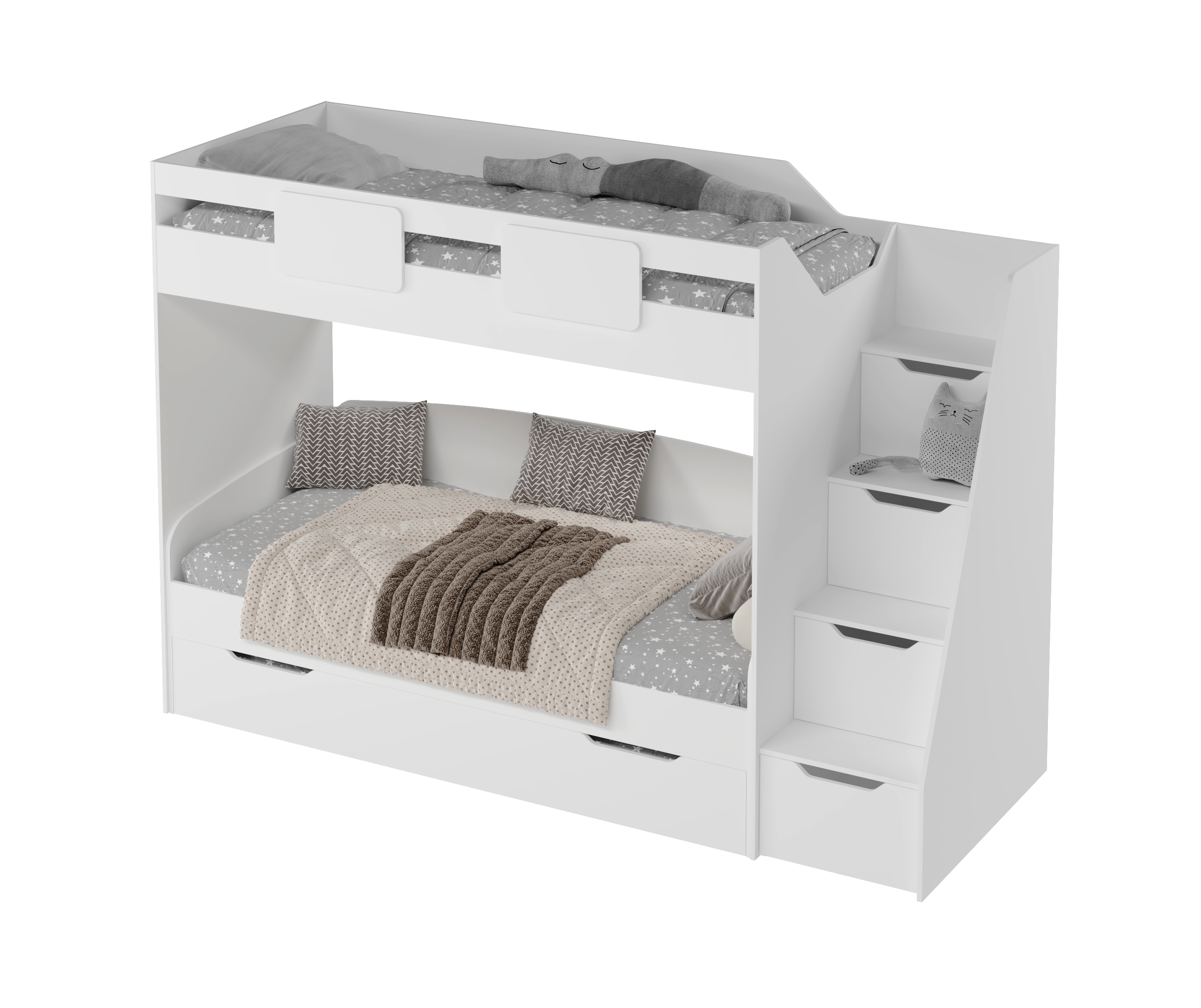 Кровать-чердак Мозаика-2 + кровать Двушка в белом цвете