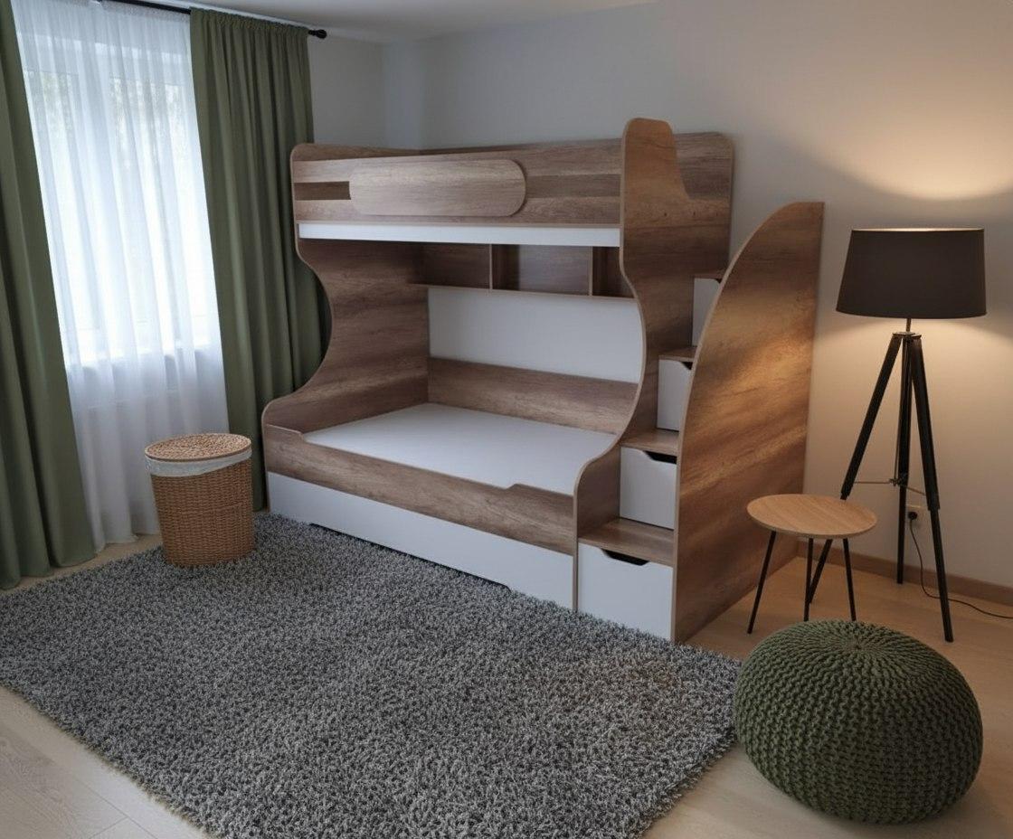 Увеличенное нижнее спальное место позволяет комфортно разместиться ребенку вместе со взрослым.