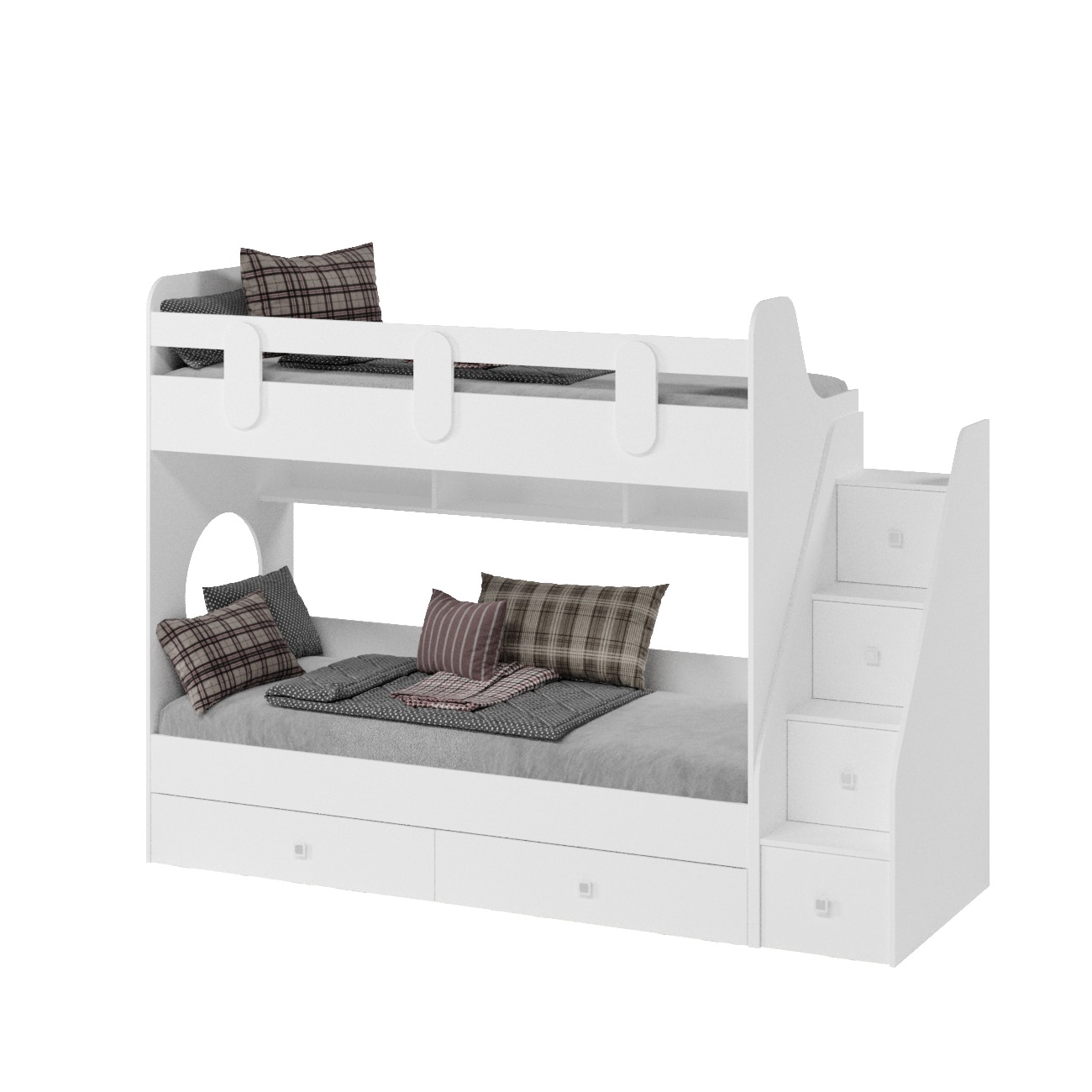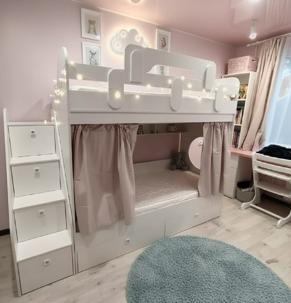 Два выдвижных ящика нижней кровати с прочным дном из ЛДСП 16 мм (не ДВП, не ХДФ!) выдерживают нагрузку до 45 кг.