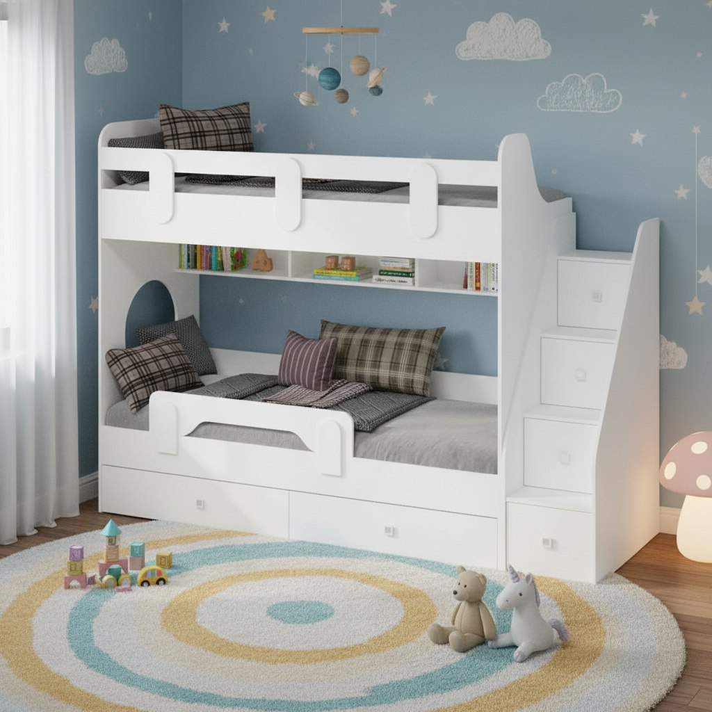 Высокая нагрузка на спальные места. Прочные ящики! Высокий, безопасный бортик |