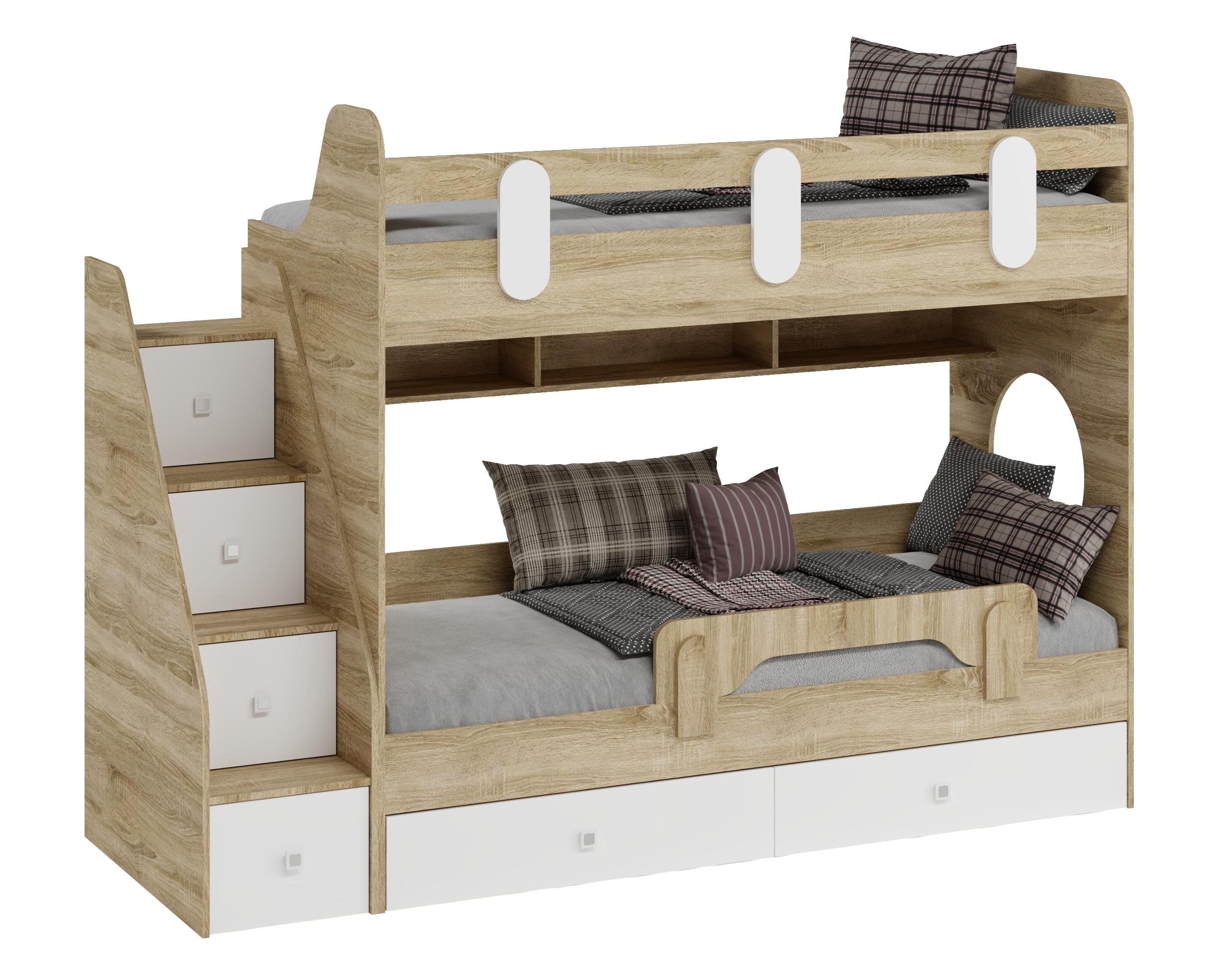 Двухъярусная кровать Фортуна-2 с удобной лестницей, высоким, безопасным бортиком и комфортной высотой.
