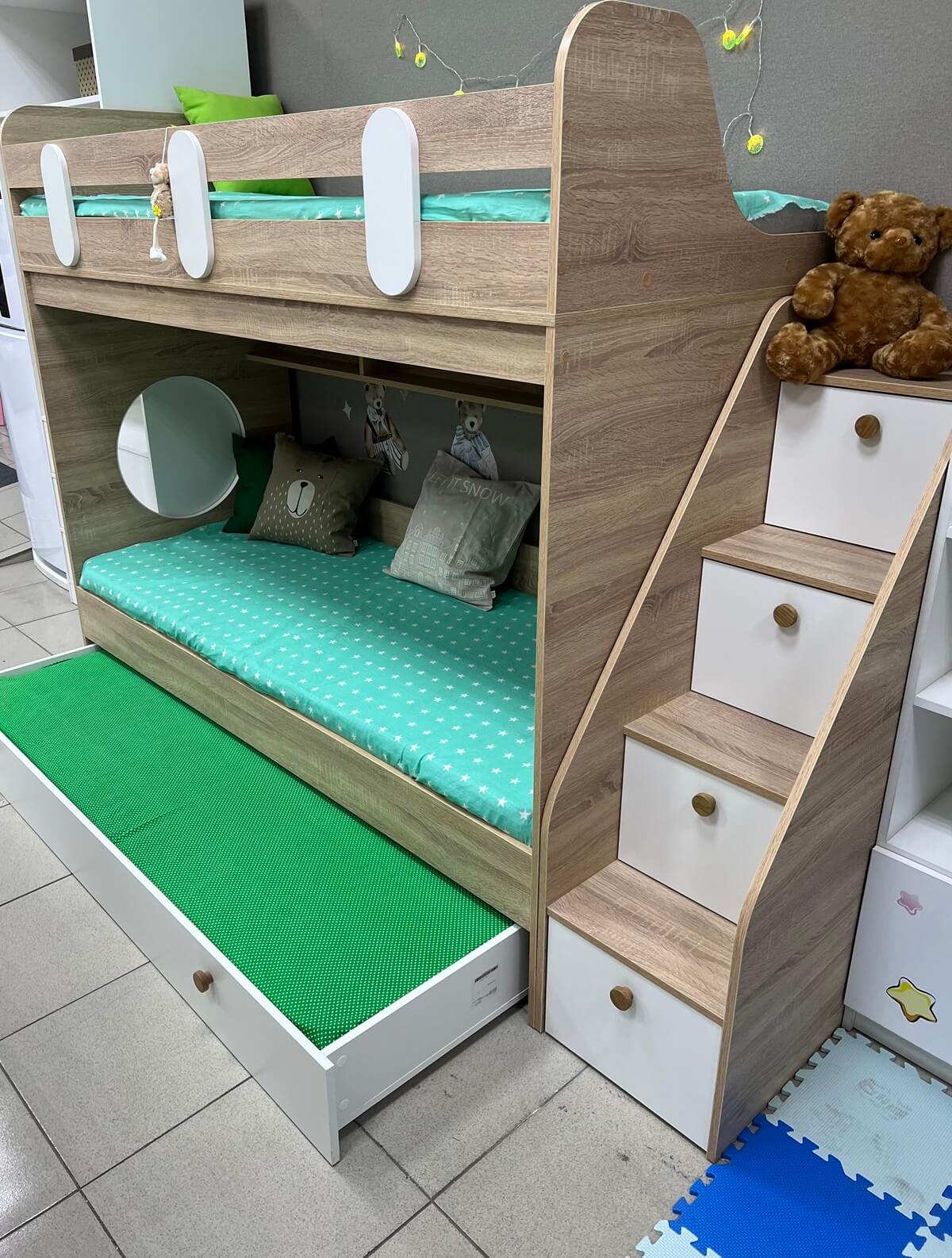 Вместо них - цельный и прочный настил из ЛДСП, который выдерживает сверхвысокую нагрузку и позволяет расположиться даже взрослому с ребенком.