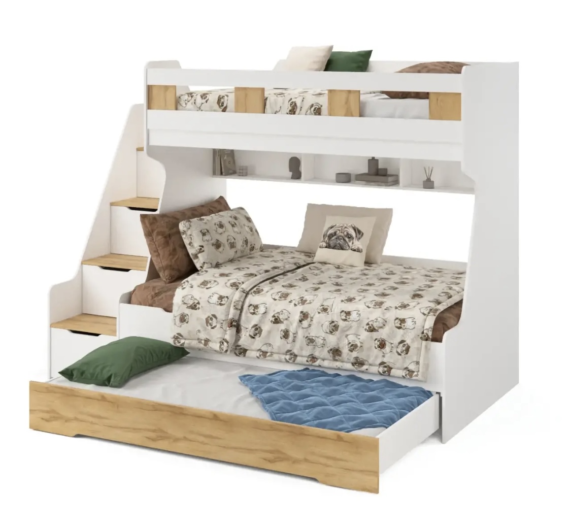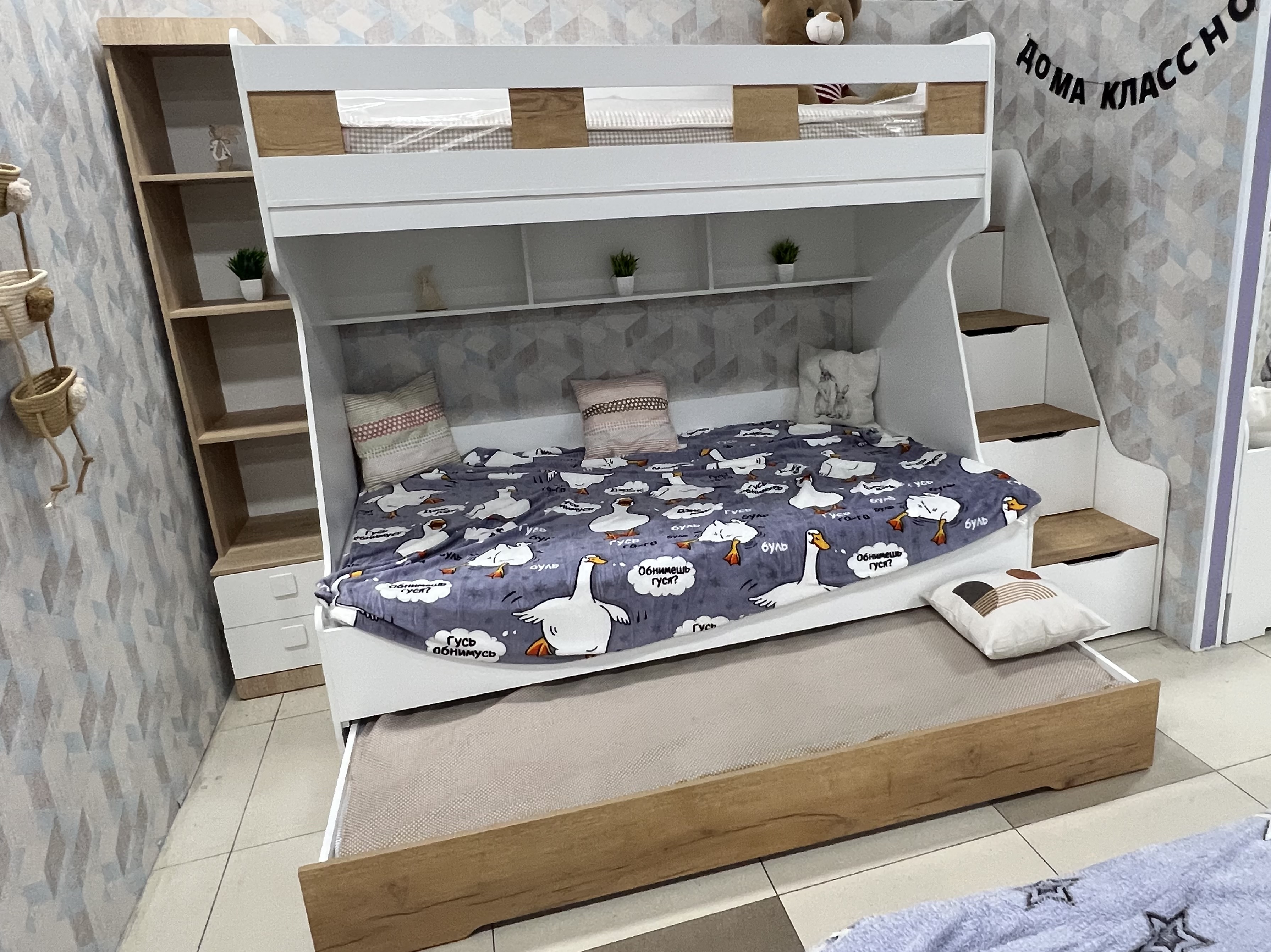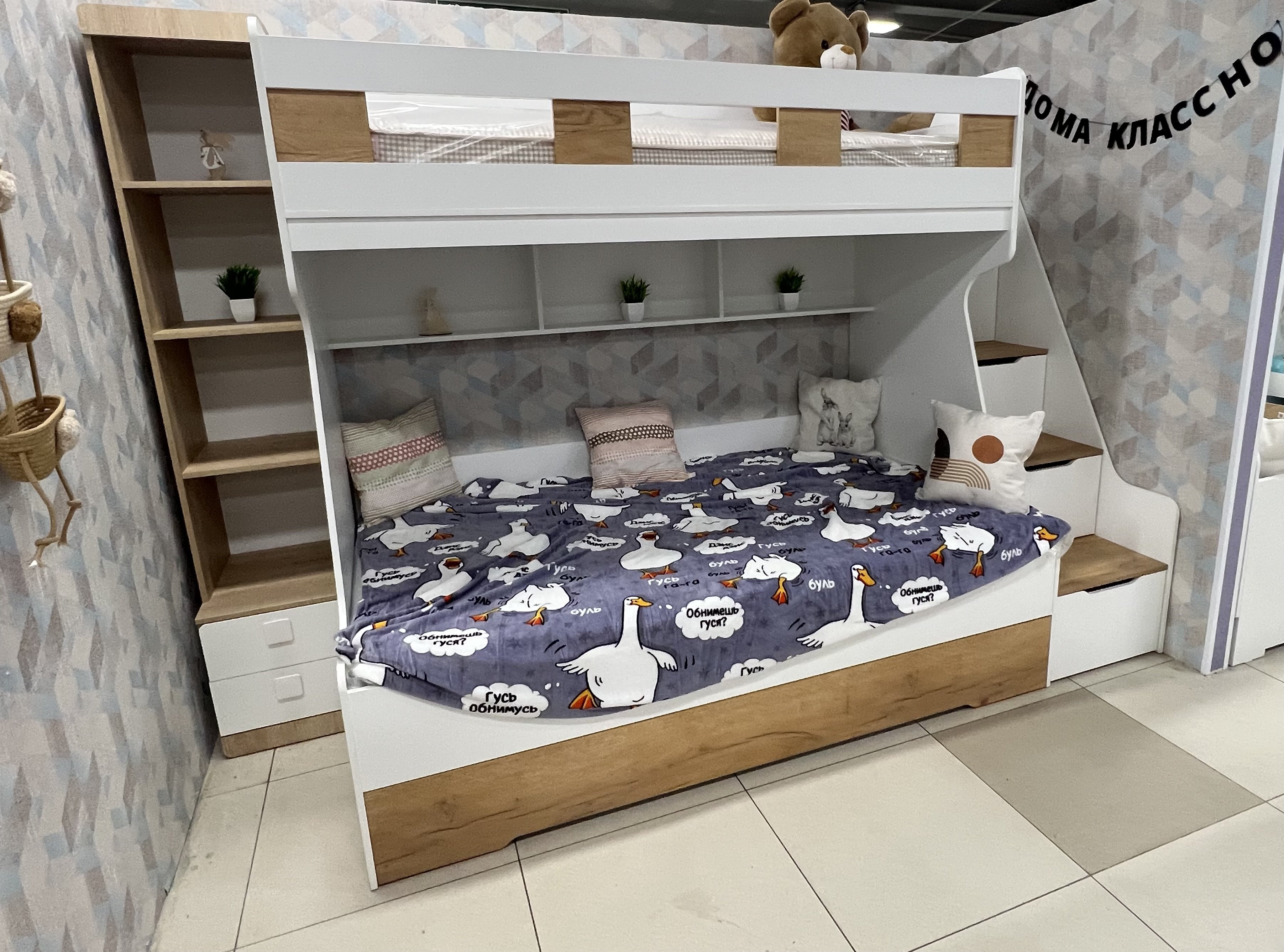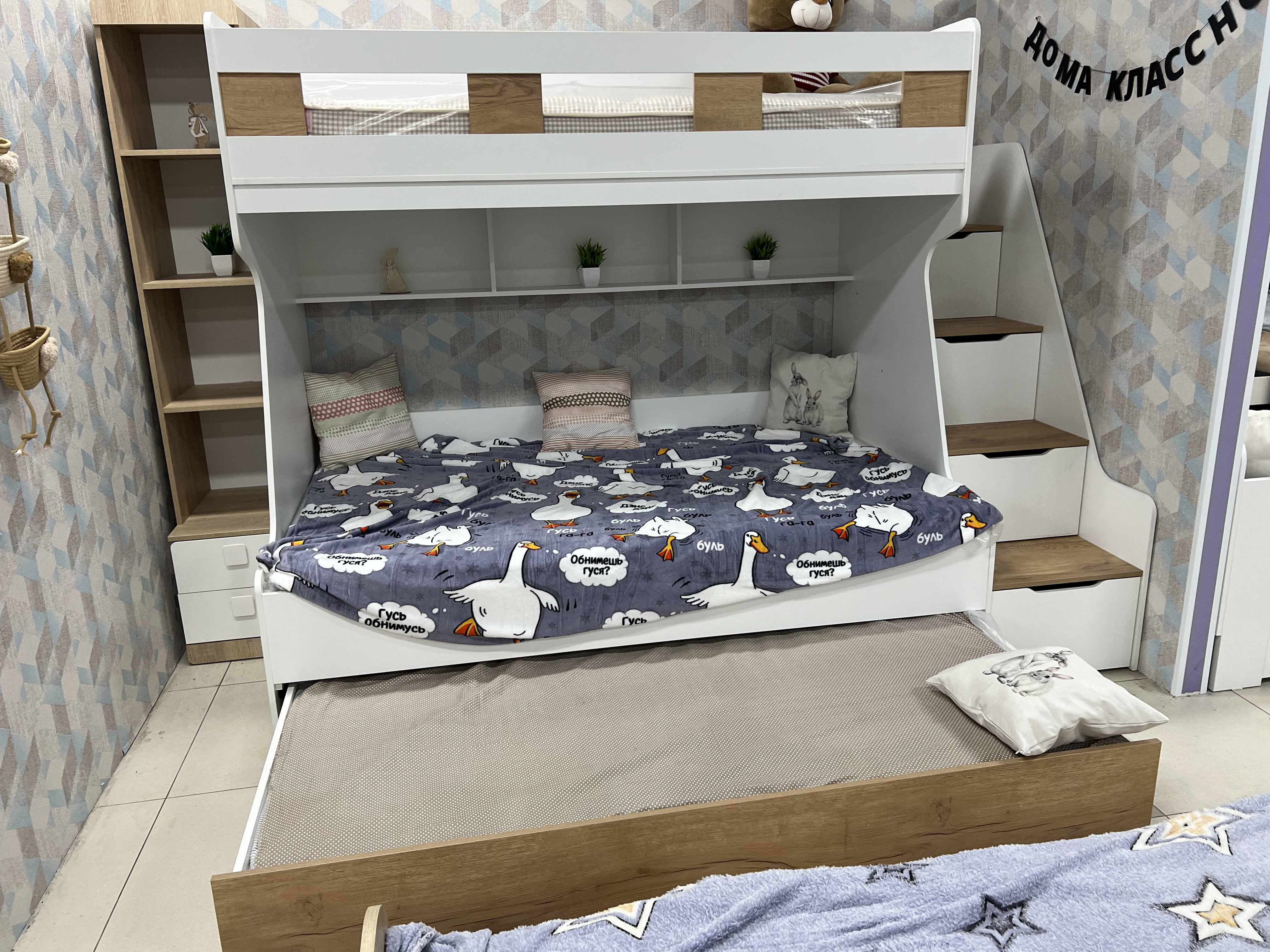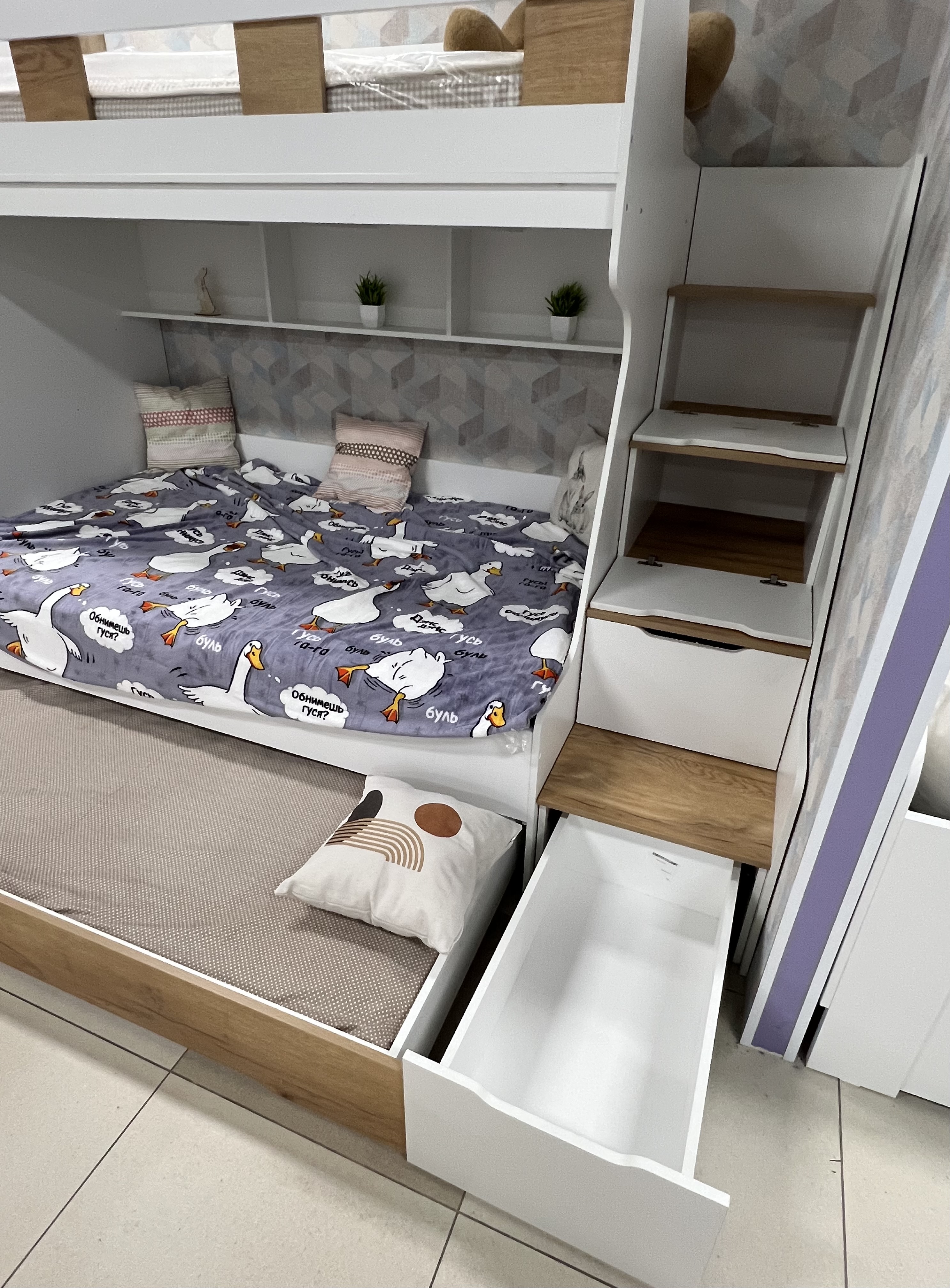 Вместо них - цельный и прочный настил из ЛДСП, который выдерживает сверхвысокую нагрузку и позволяет расположиться даже взрослому с ребенком.
