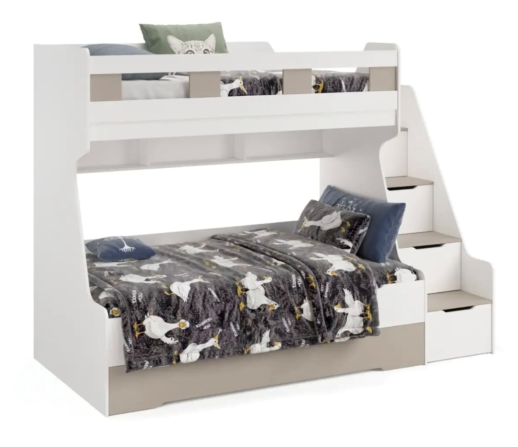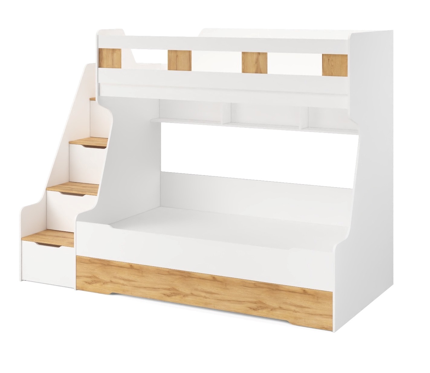 Кровать доступна в расцветках: полностью белый, дуб золотистый + белый, велюр + белый
