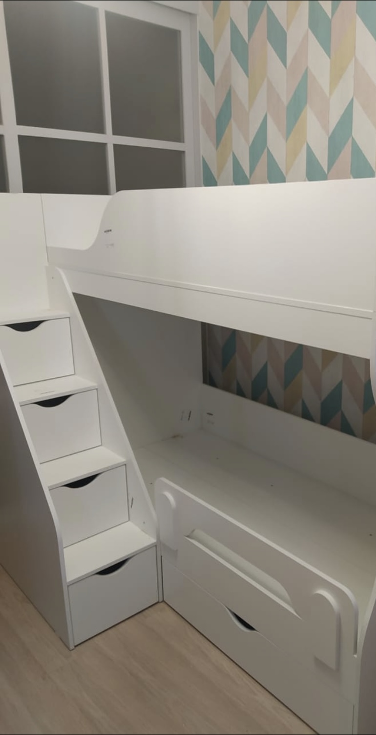 Преимущества данной модели - удобная, безопасная лестница с ящиками для игрушек и комфортная высота кровати.