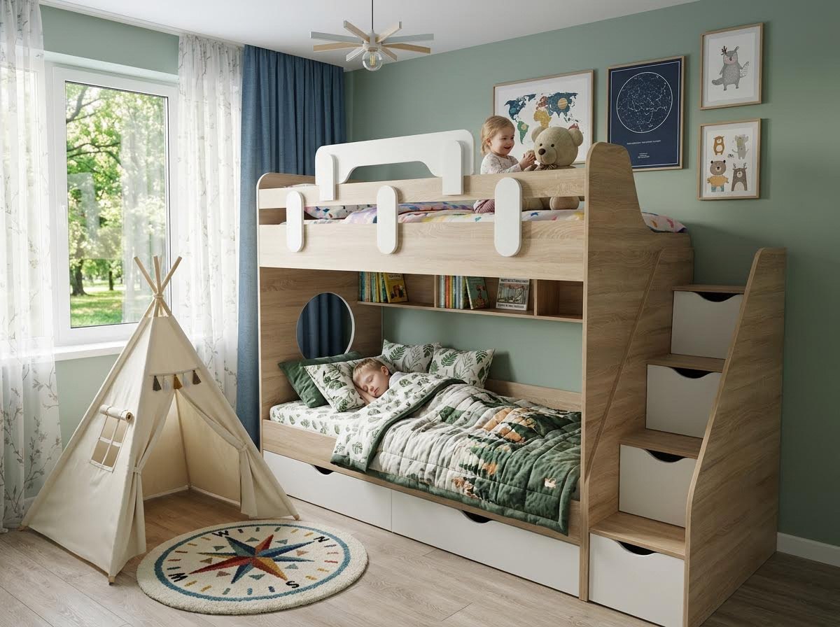 Уникальная двухъярусная кровать Фортуна предлагает не только стиль и безопасность, но и удобство на высоте!
