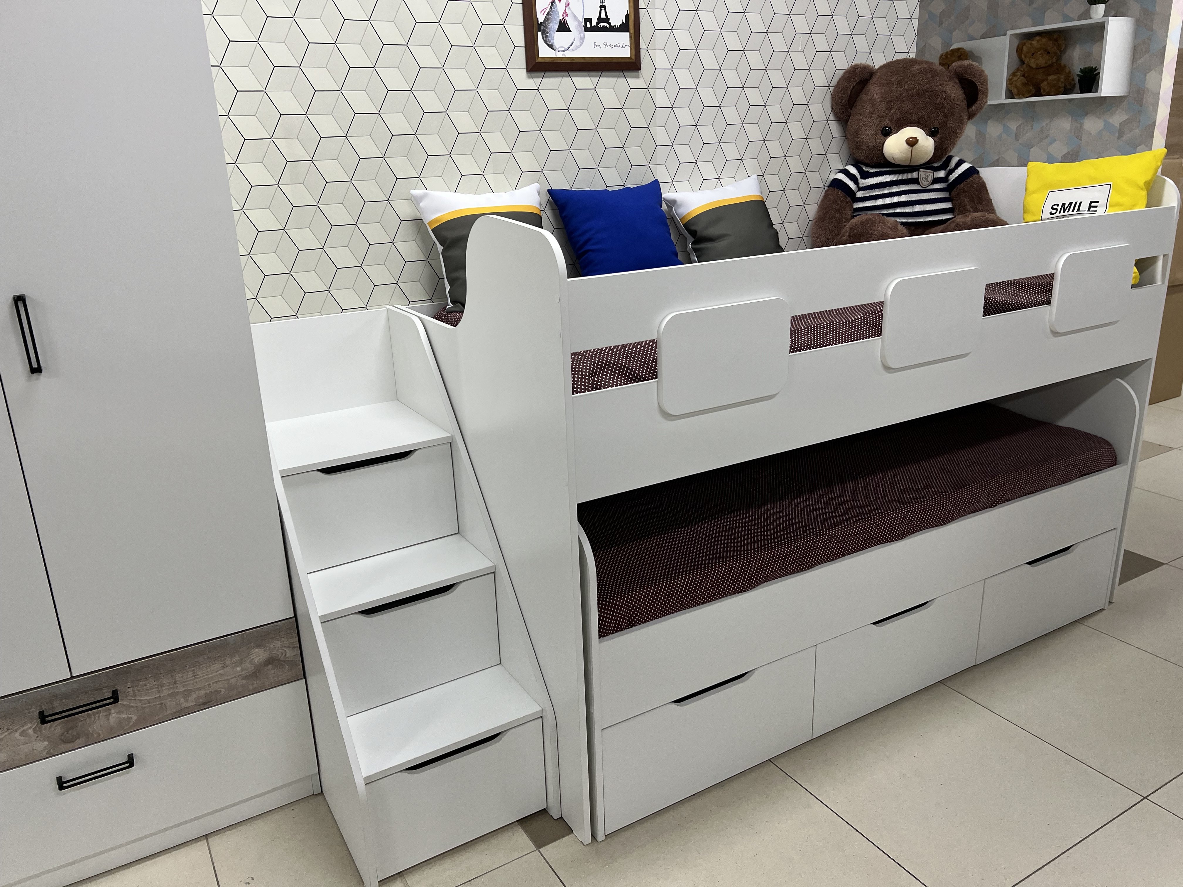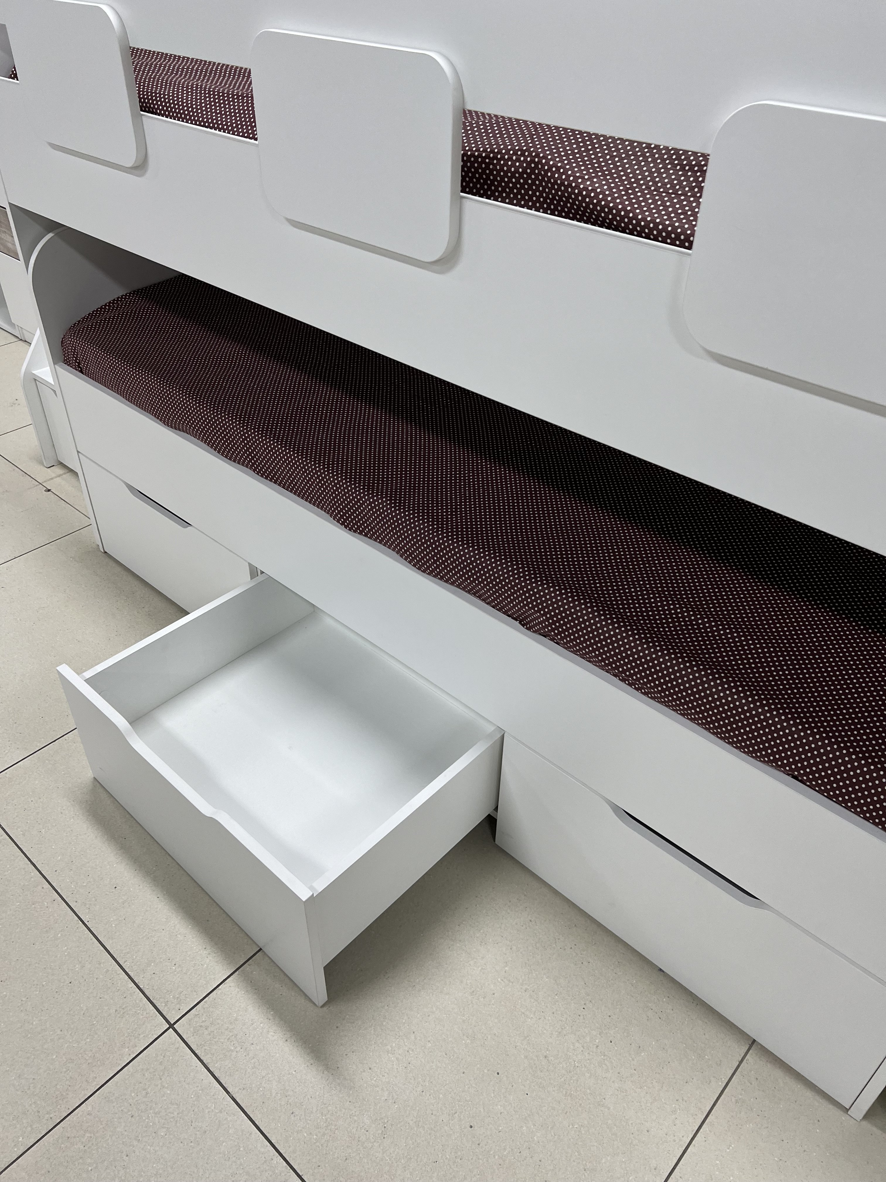 * Нижняя кровать выдвигается полностью благодаря колесным опорам.