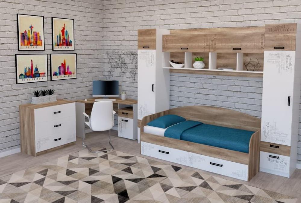кровать + угловой стол + полка (2 шт) + пенал (2 шт) + комод