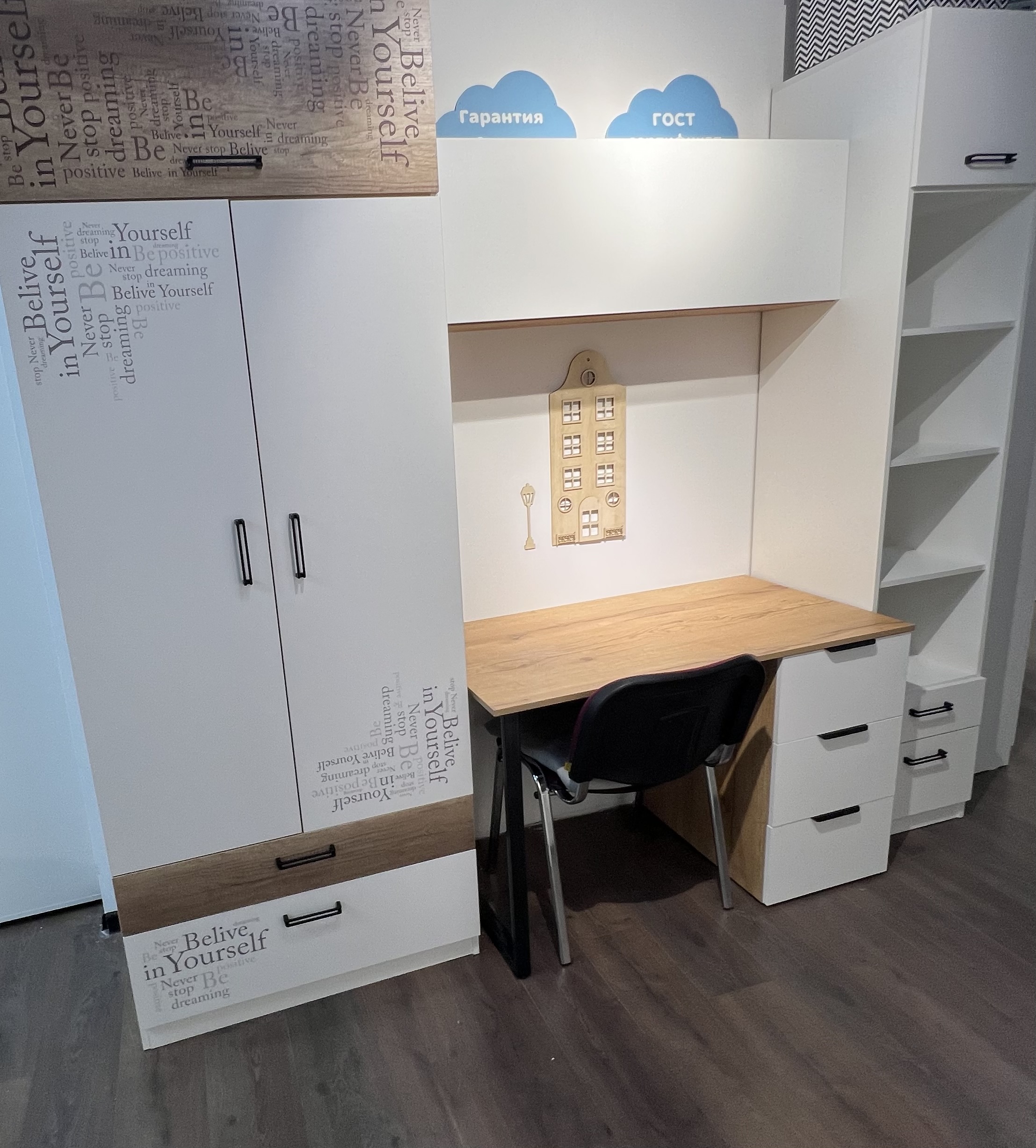 Мебель выполнена из сертифицированного, качественного, экологически чистого ЛДСП класса Е0,5