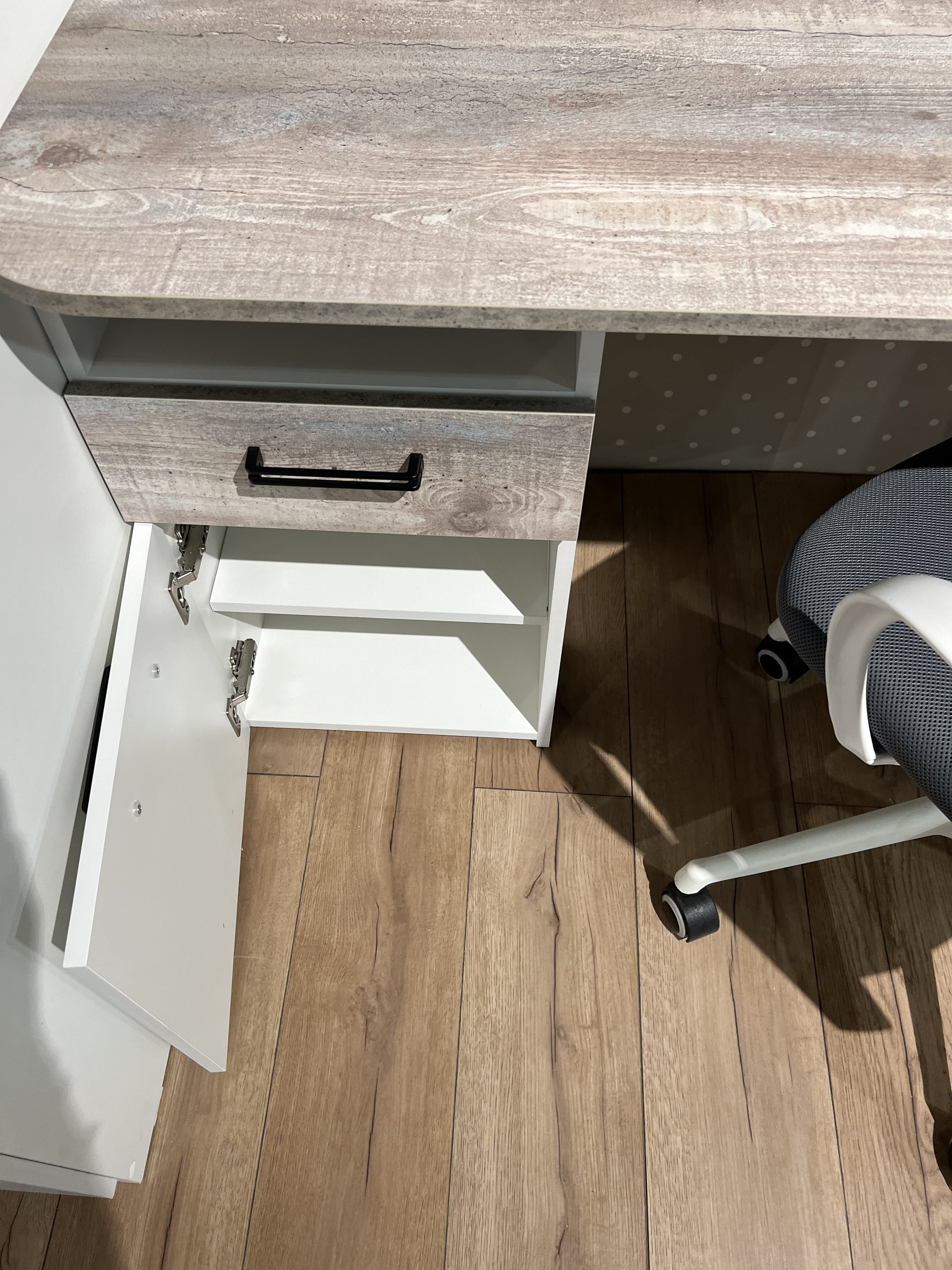На дверке стола также установлены петли с доводчиками.