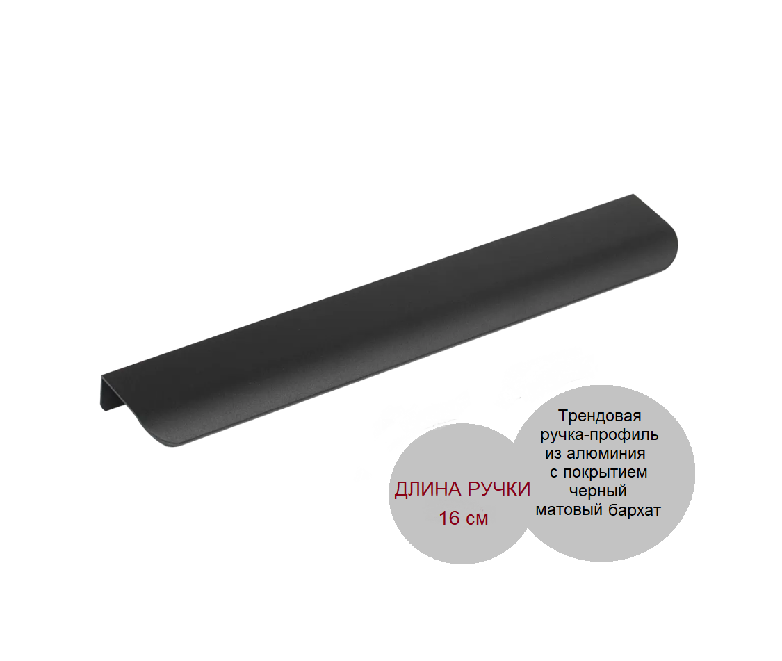 Трендовые ручки-профиль из алюминия с отделкой черный матовый бархат. Длина ручки 16 см |