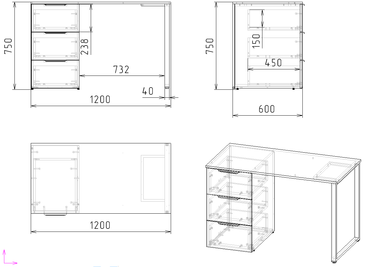 Доводчики, направляющие скрытого монтажа. Дно ящиков прочное - выполнено из ЛДСП 16 мм (не ДВП!) |
