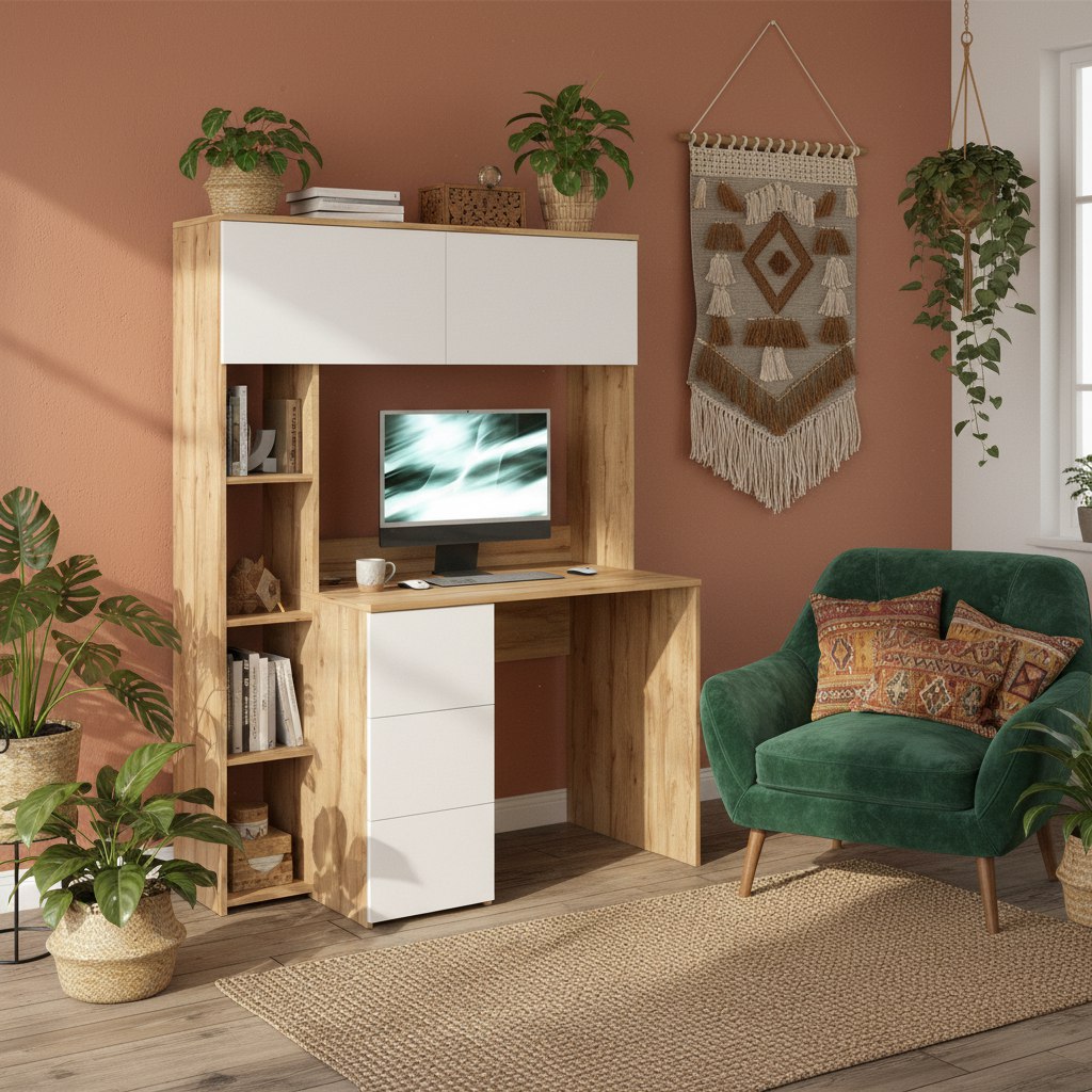 Просторная поверхность, удобные полки и ящики позволят разместить учебники, книги и канцелярию.