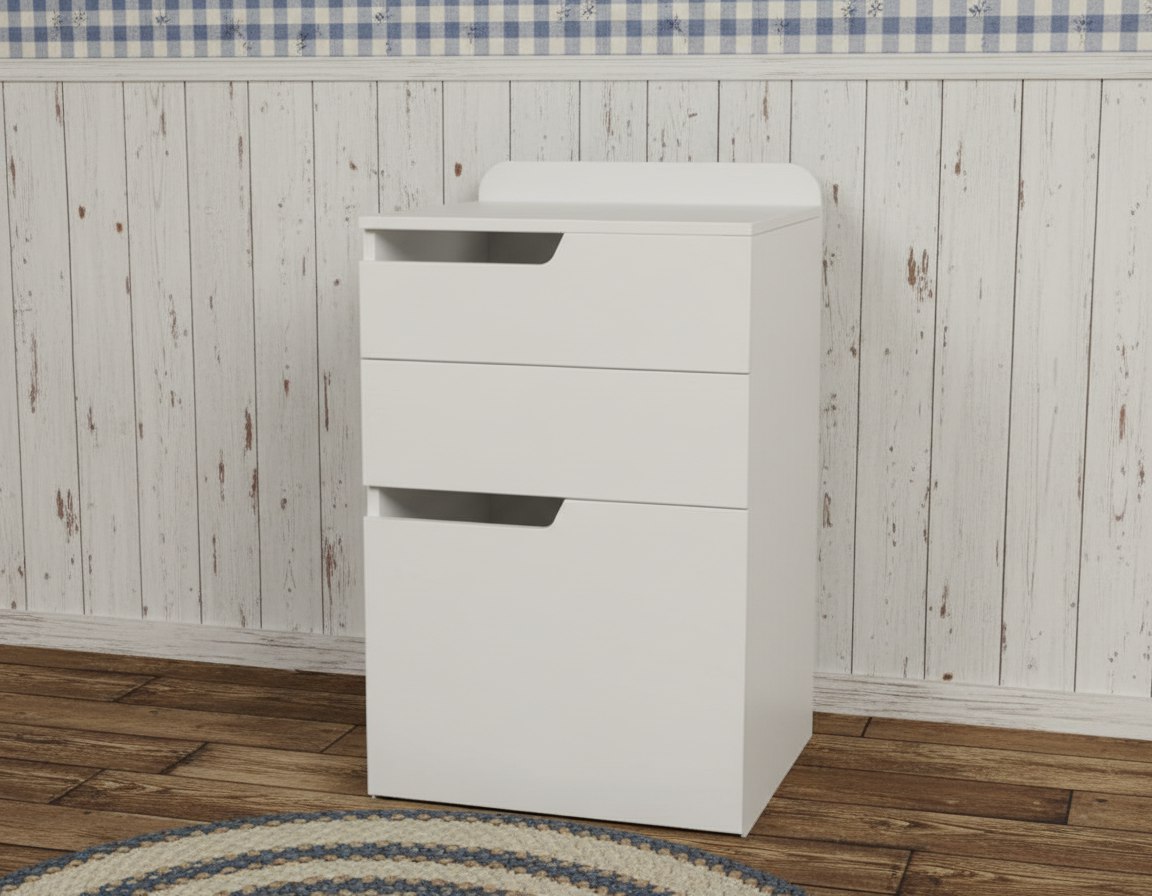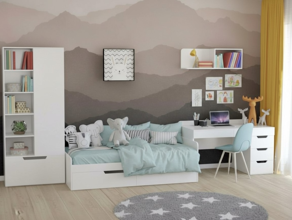 Мебель выполнена из сертифицированного, качественного, экологически чистого ЛДСП Е0,5 в белом цвете.