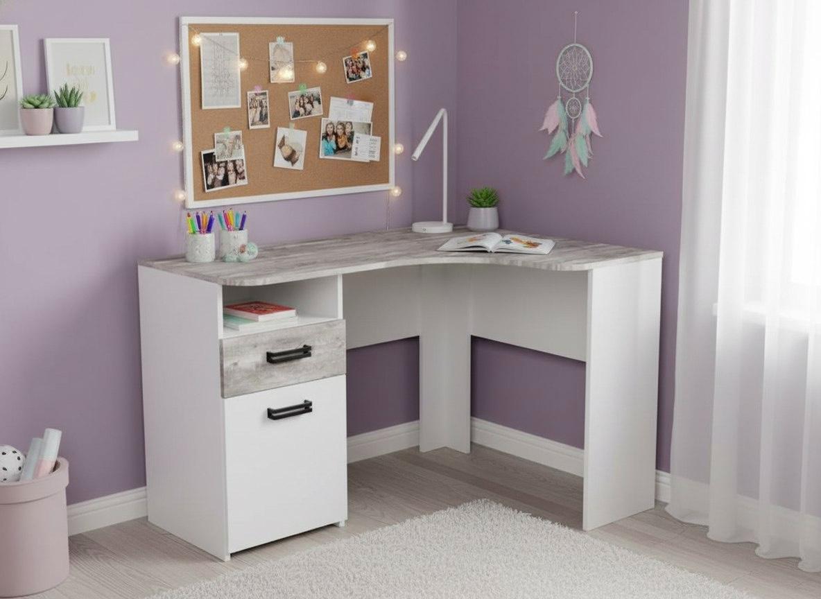 Мебель выполнена из сертифицированного, качественного, экологически чистого ЛДСП класса Е0,5 в сочетании цветов "бетон пайн" + белый.