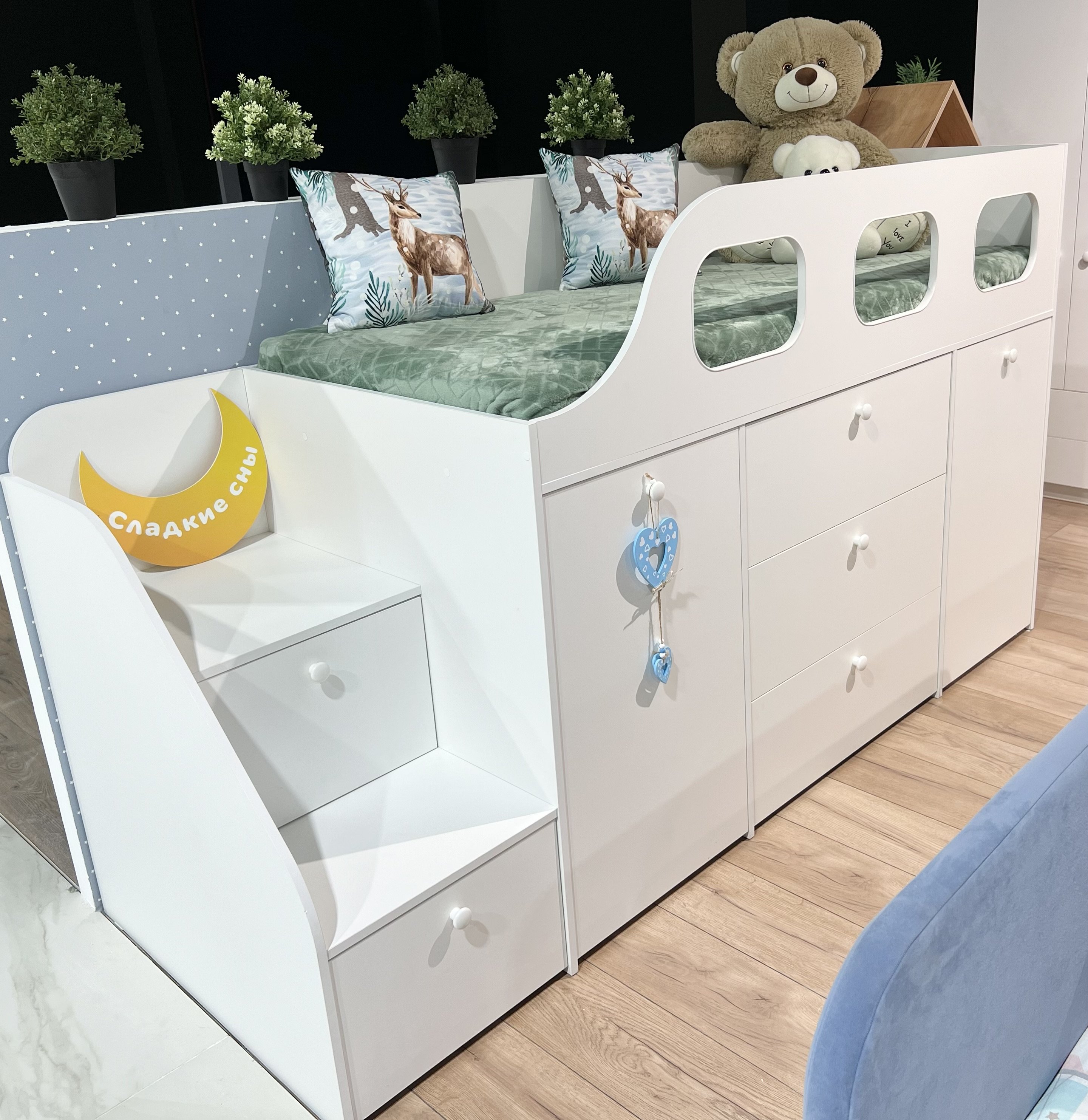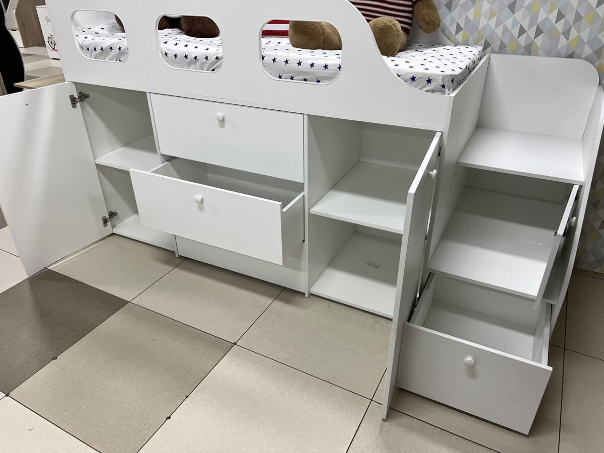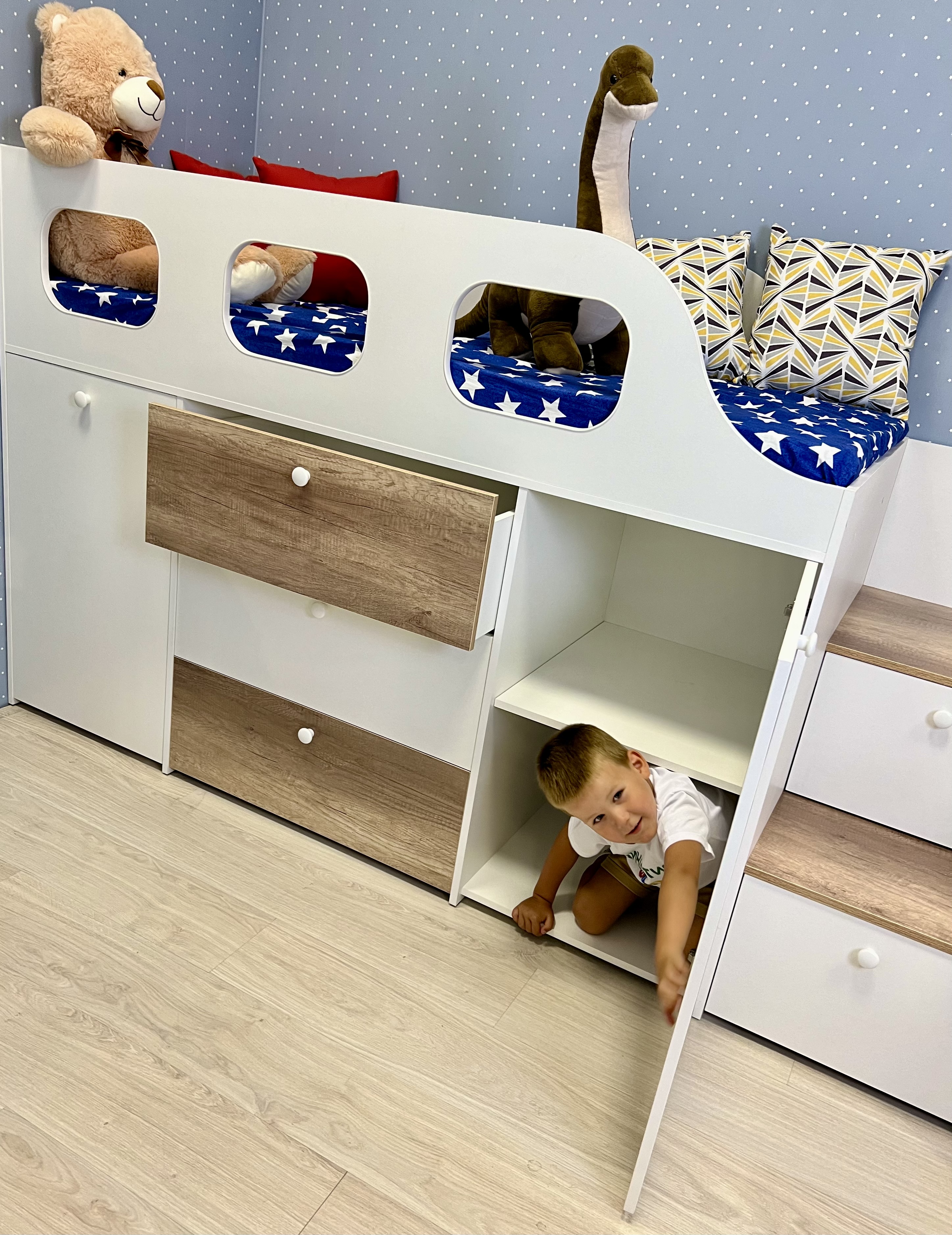 <comment>Здравствуйте! Купили такую модель, но с цветом под дерево. Очень довольны кроваткой. Качество на 150 баллов. Очень удобная кровать, большие ящики и шкафчики. Очень практично. Спасибо за такой классный товар! </comment>