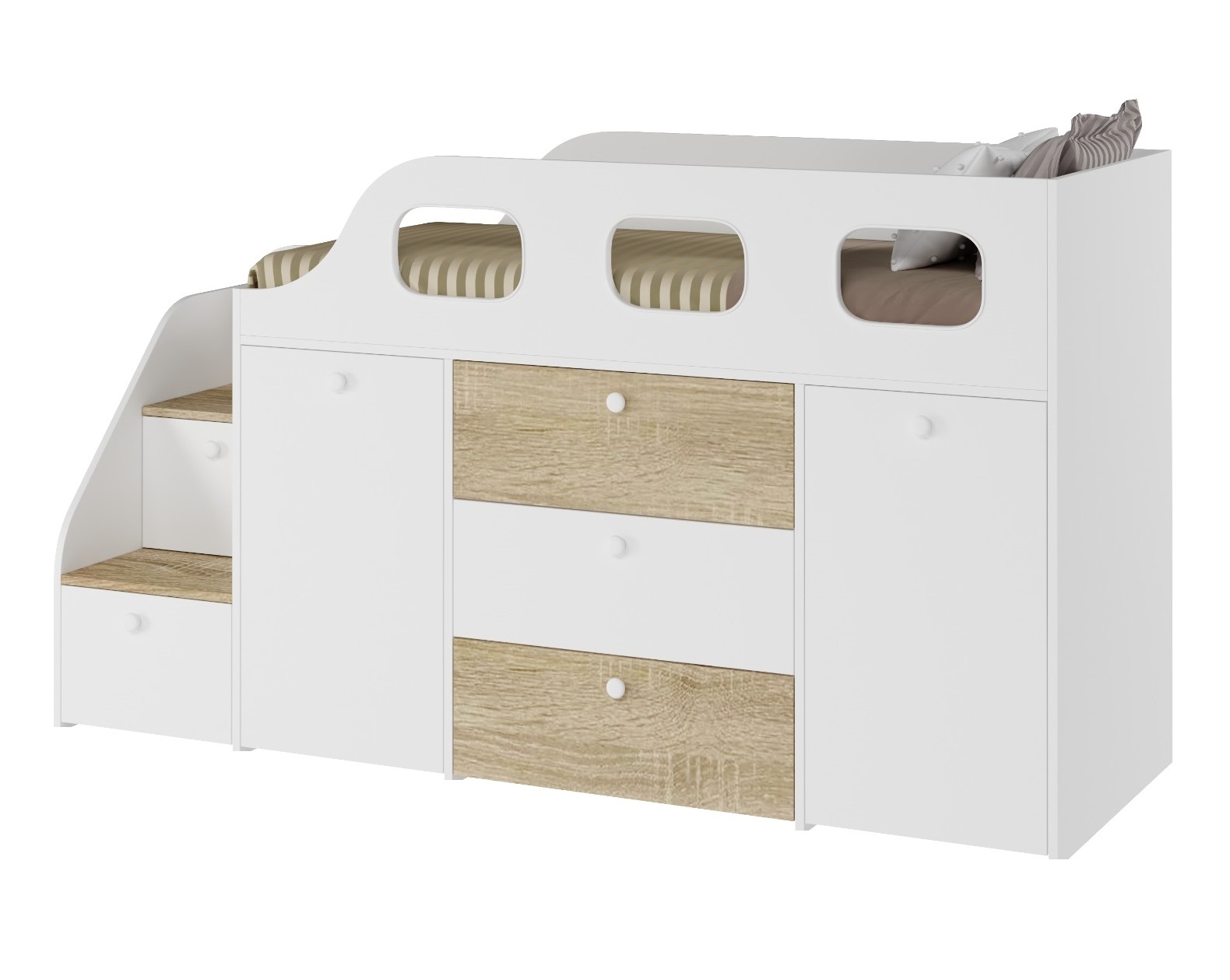 Цвет—Кровать-чердак Хэппи (цвет Дуб сонома+белый)