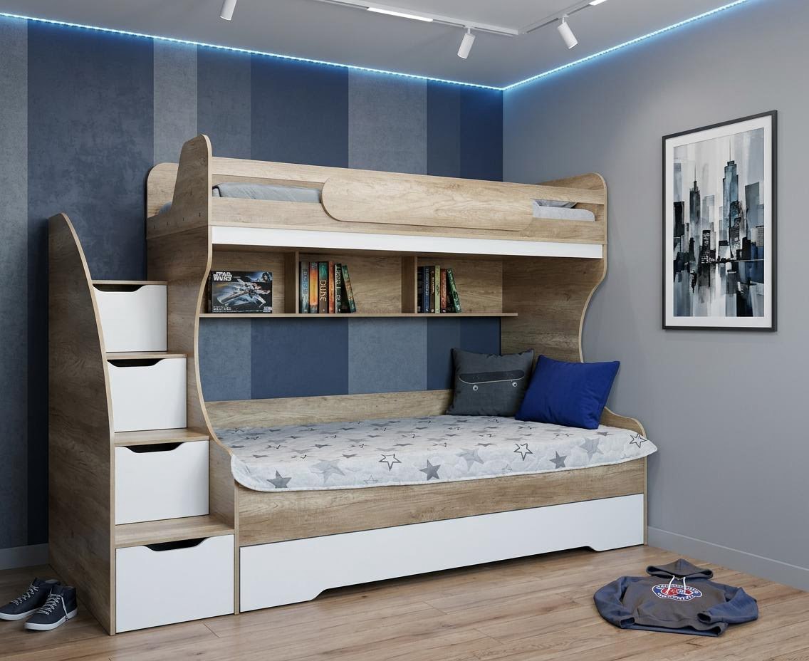 Увеличенное нижнее спальное место позволяет комфортно разместиться ребенку вместе со взрослым.