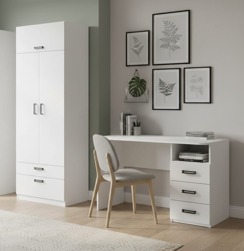 Мебель выполнена из качественного, экологически чистого ЛДСП класса Е0,5 в белом цвете.