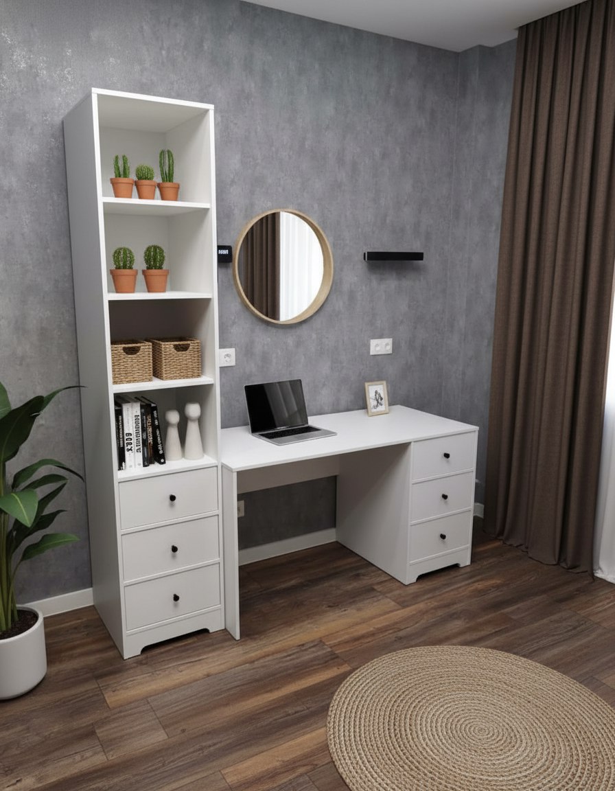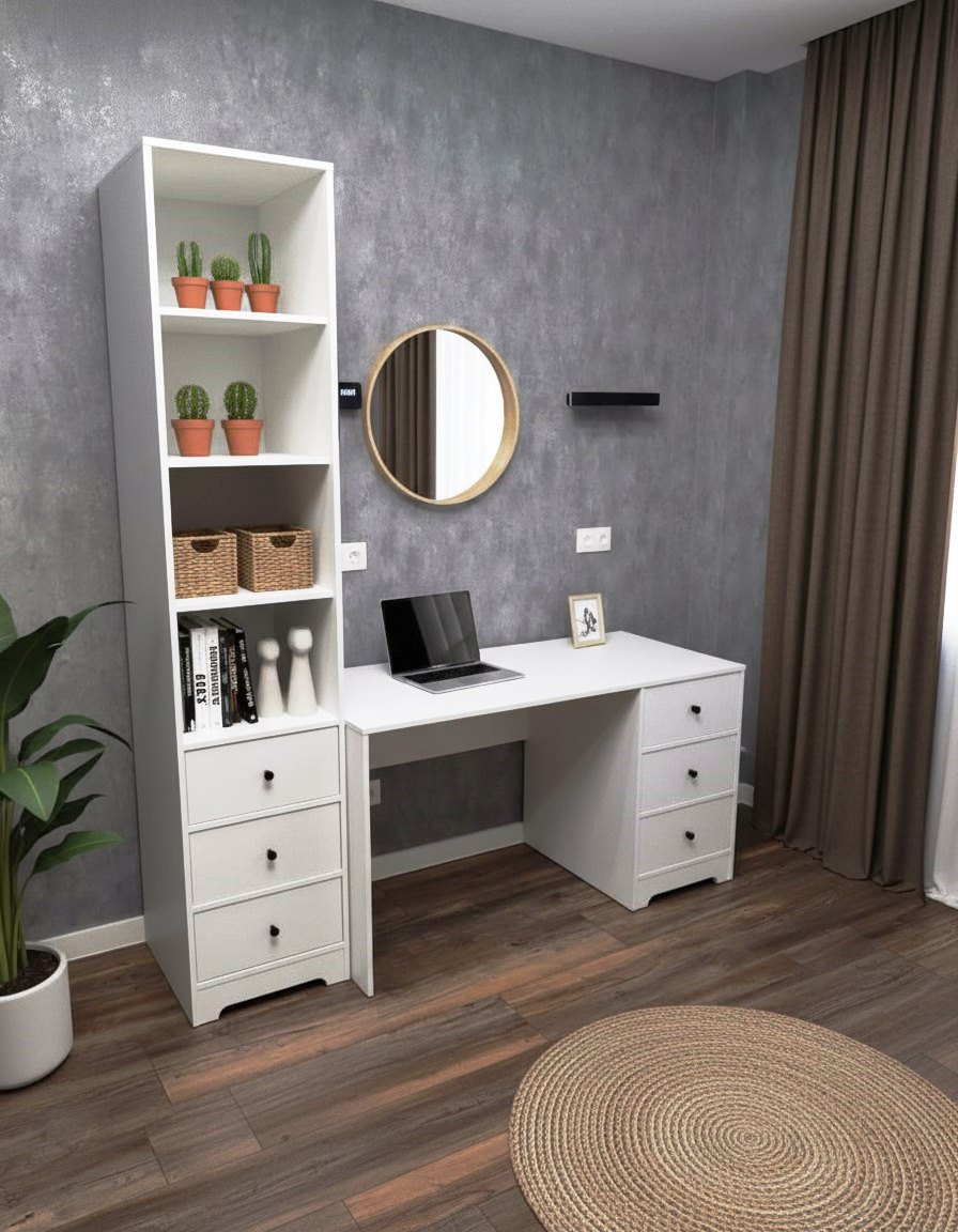 Комплект коллекции Норд: стол + стеллаж с ящиками