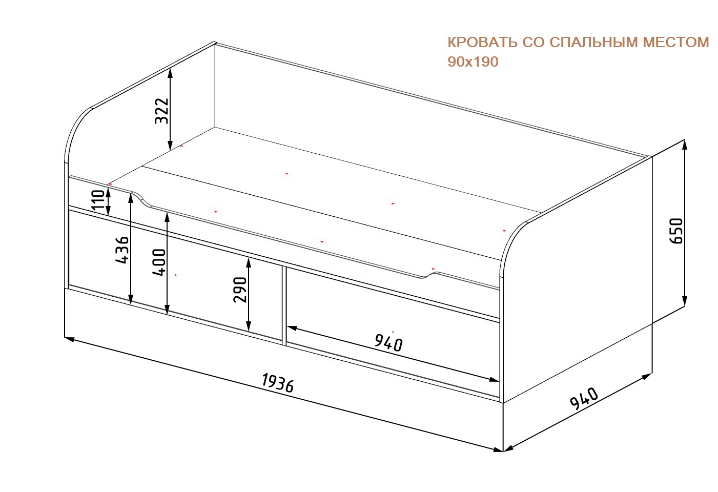 Габариты кровати со спальными местами 90х200: