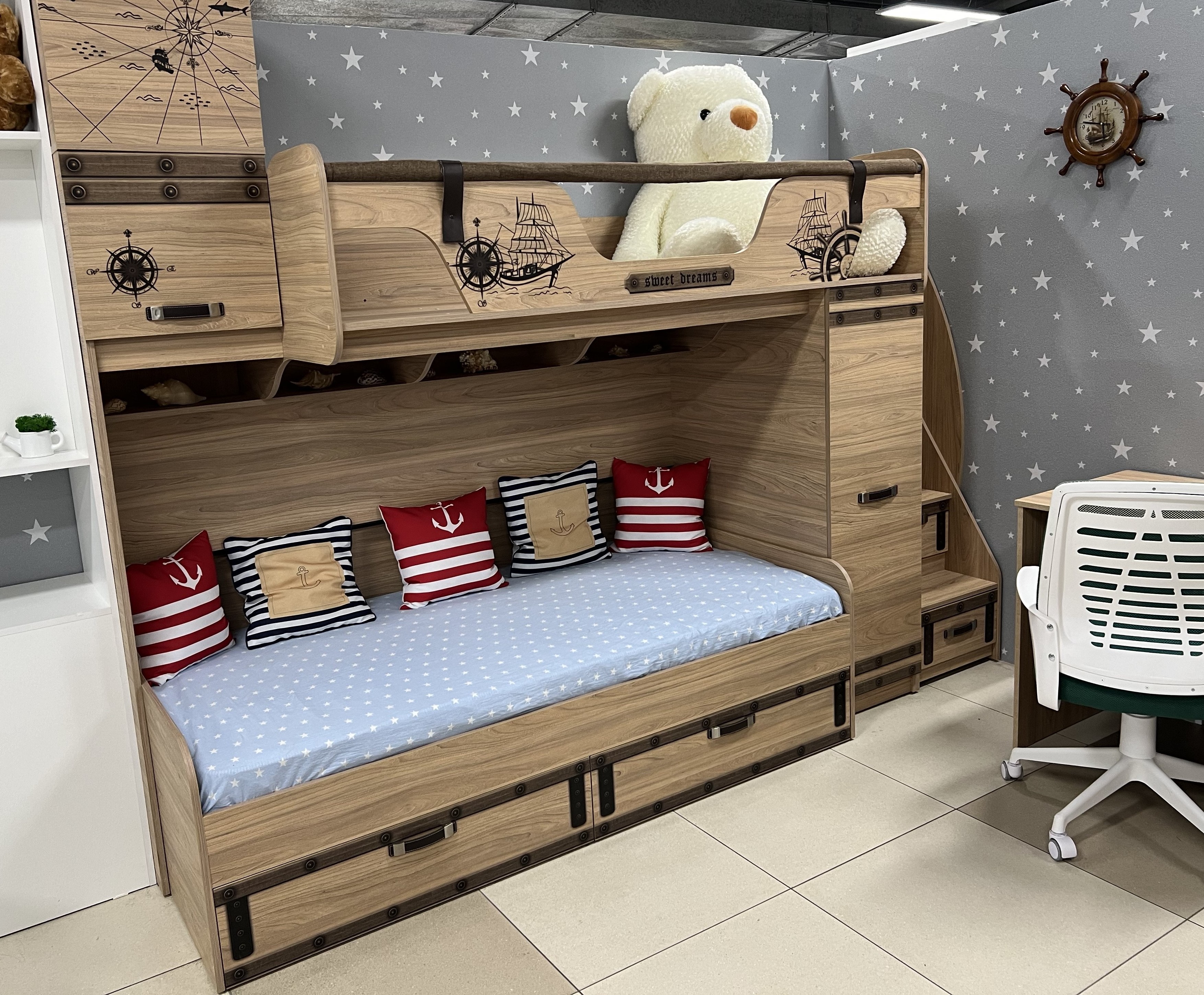 * По габаритам кровать подходит для установки под кровать-чердак Фрегат-4