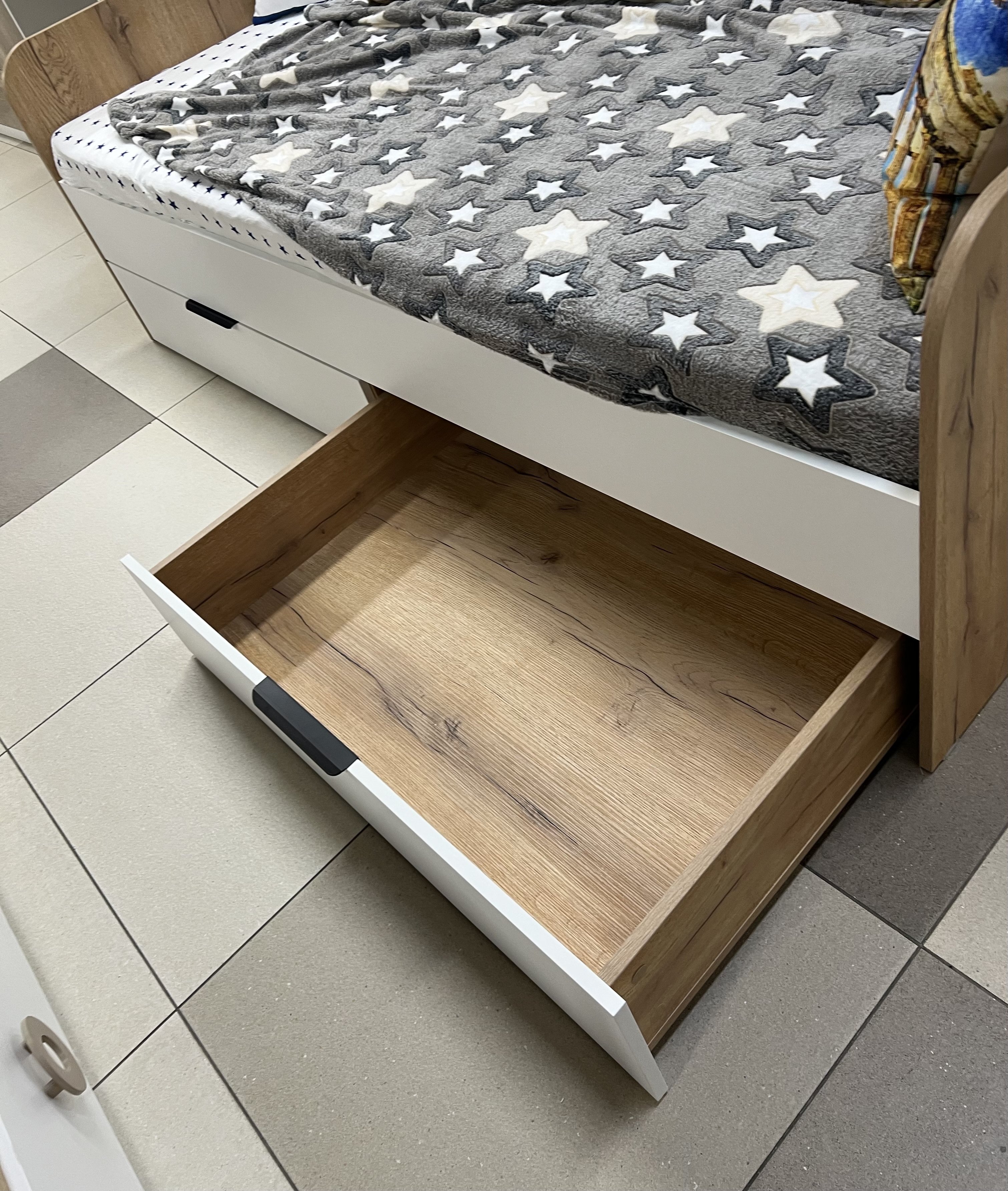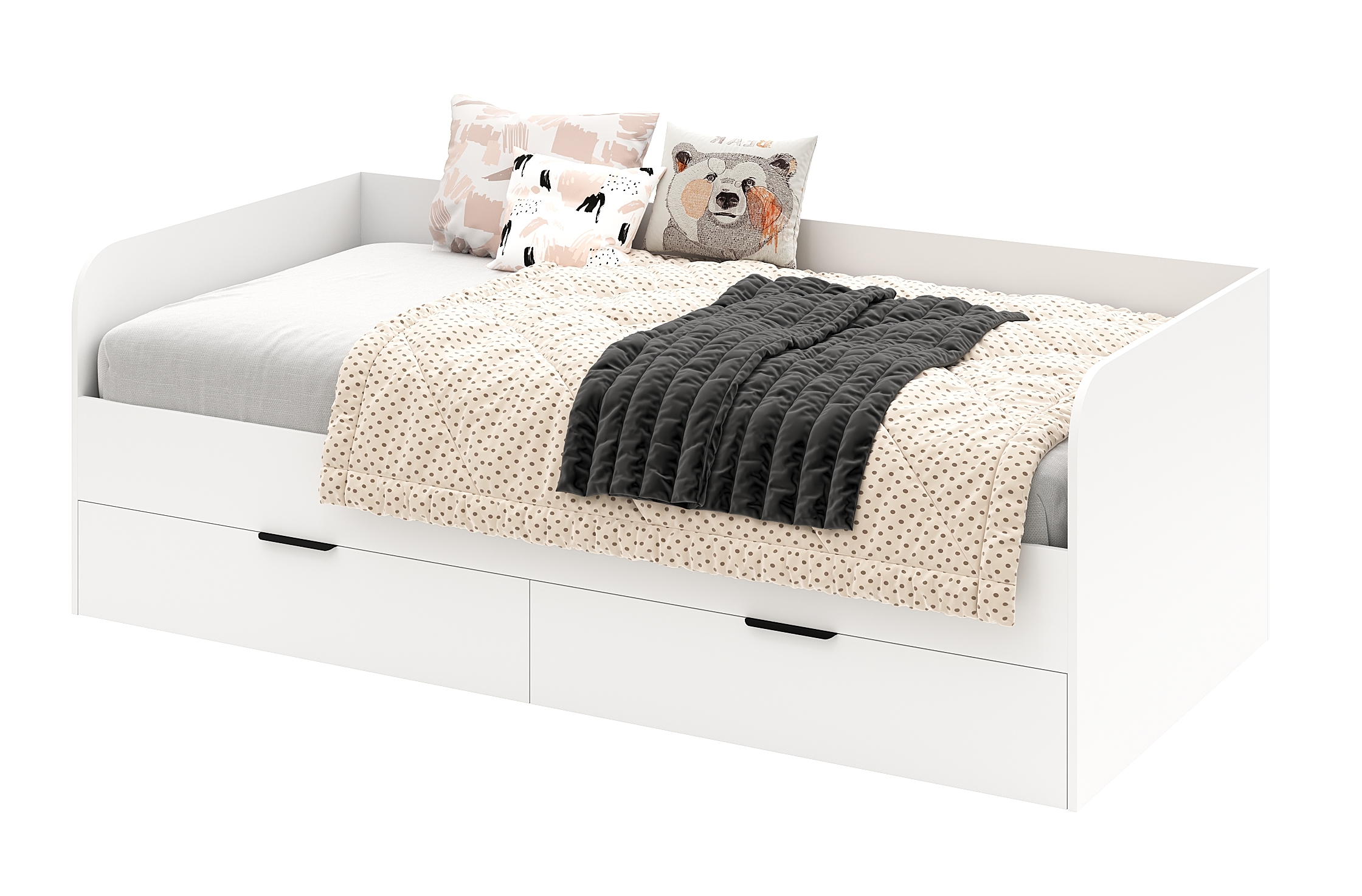 Торцы кровати закруглены и обработаны толстой ударопрочной кромкой ПВХ 1 мм.