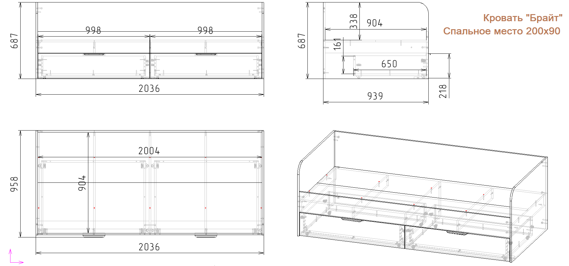 Габариты кровати со спальными местами 90х200: