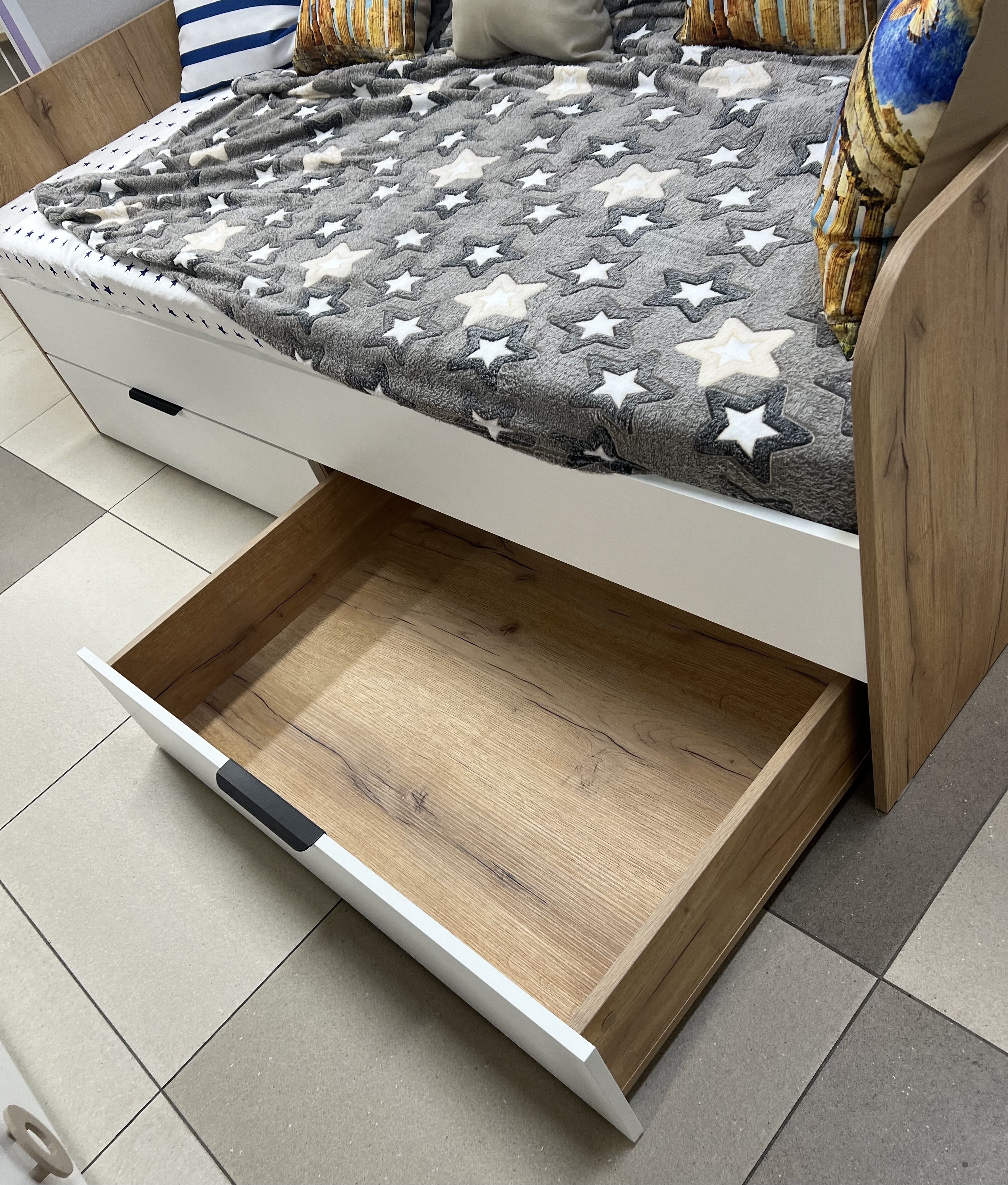 Торцы кровати закруглены и обработаны толстой ударопрочной кромкой ПВХ 1 мм.