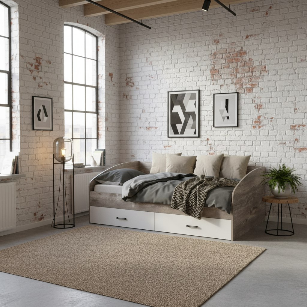 экологически чистого ЛДСП класса Е0,5 в сочетании цветов бетон пайн с белым.