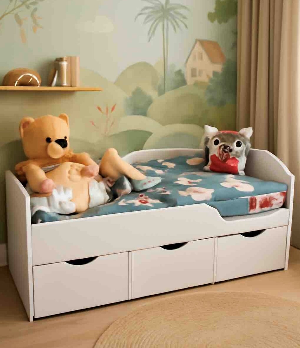 Три вместительных выдвижных ящика помогут всегда хранить личные вещи и игрушки ребенка в собранном виде.
