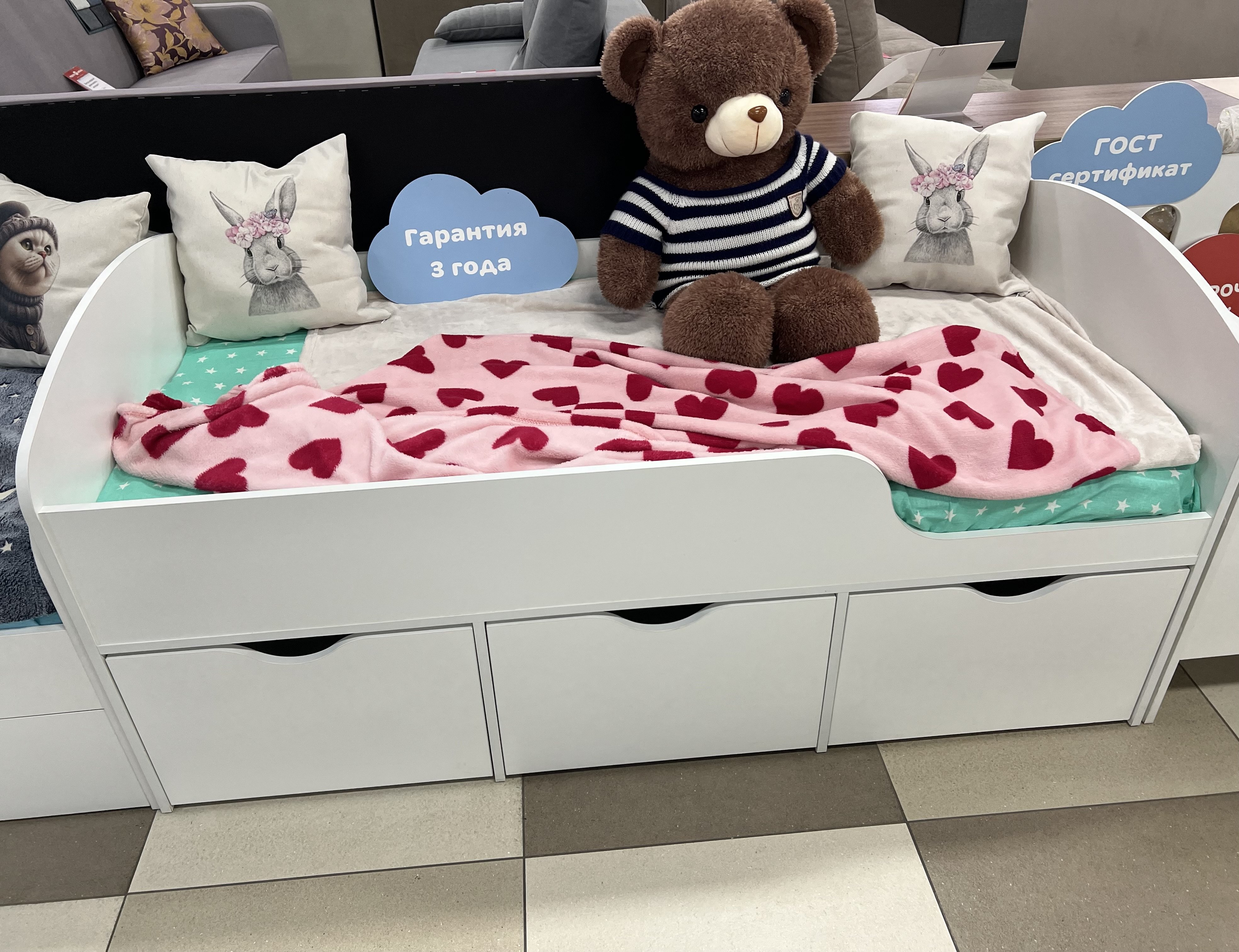 * Для дополнительной усиленной защиты для самых маленьких деток можно приобрести съемный бортик-ограничитель (устанавливается наверх основного бортика кровати).