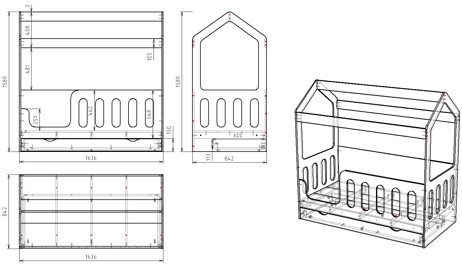 * Основание кровати – прочный настил ЛДСП (НЕ РЕЙКИ!), который позволяет ребенку спать на ровной поверхности, что важно для детской спины.