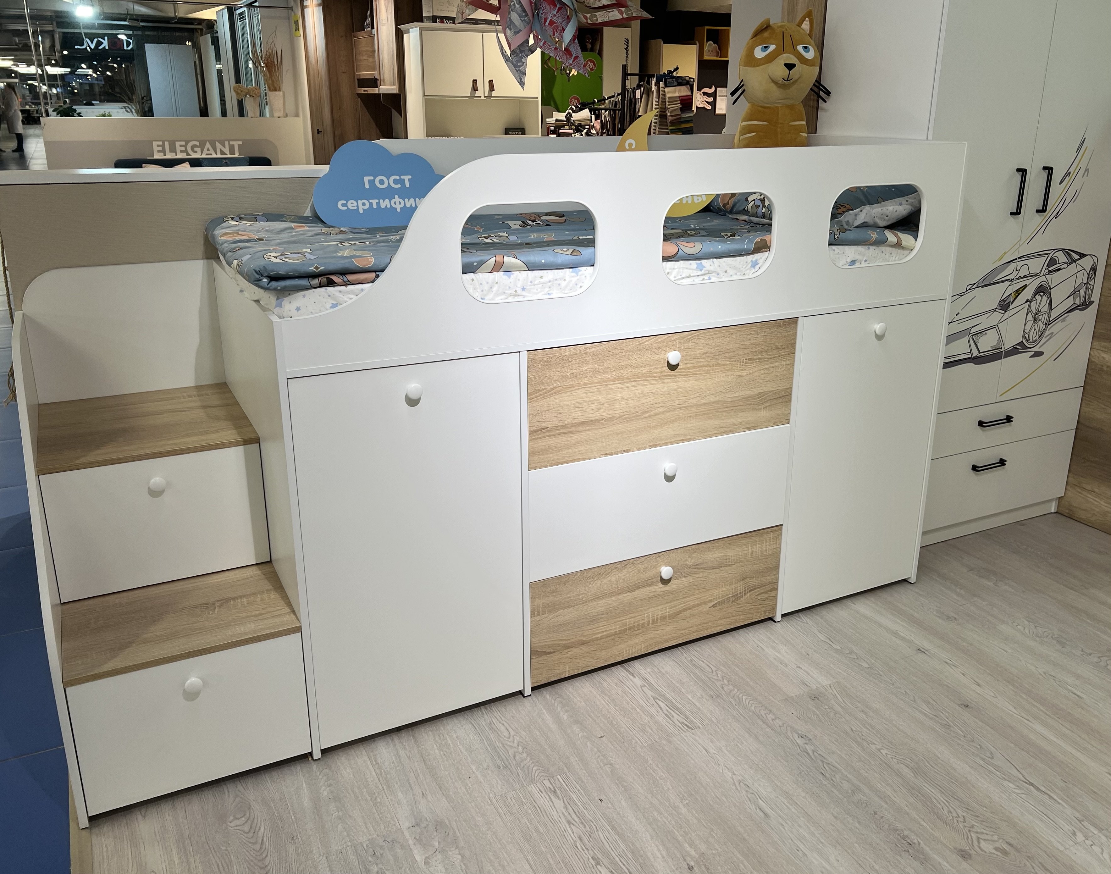 * Основание кровати – прочный настил ЛДСП (НЕ РЕЙКИ!), который позволяет ребенку спать на ровной поверхности, что важно для детской спины.