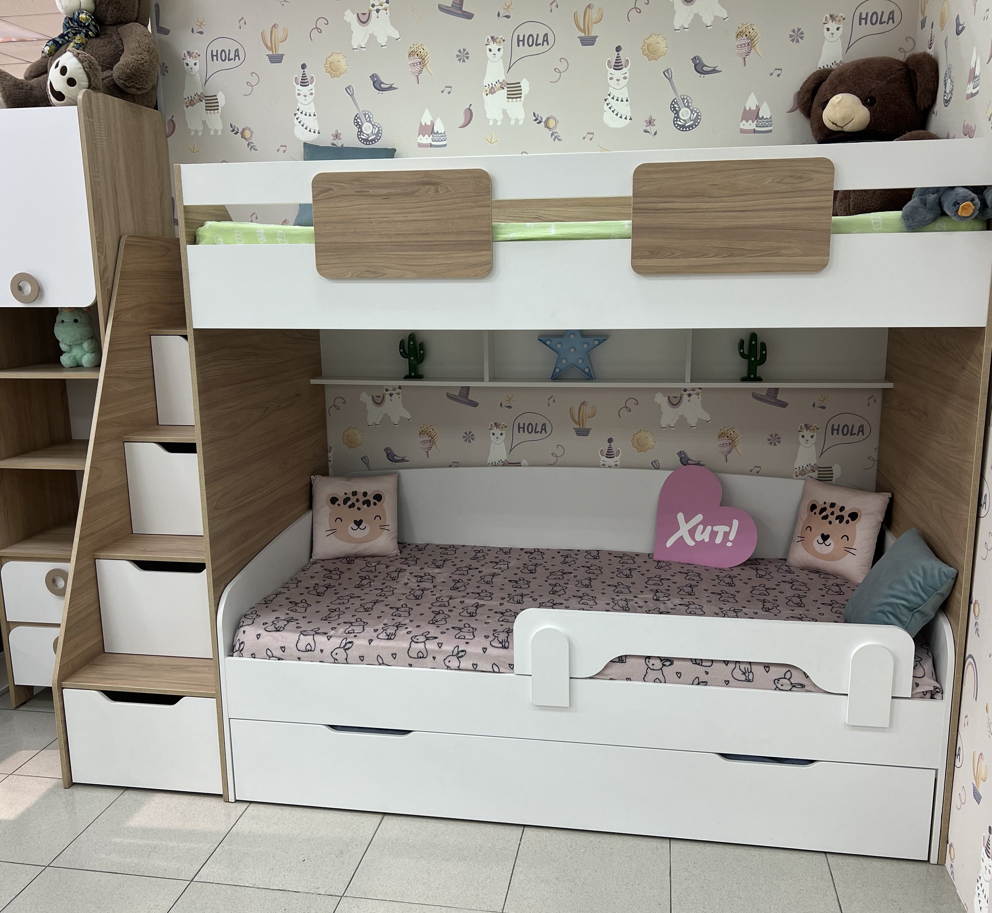 Основание кровати – прочный настил ЛДСП, который позволяет ребенку спать на ровной поверхности, что важно для детской спины.