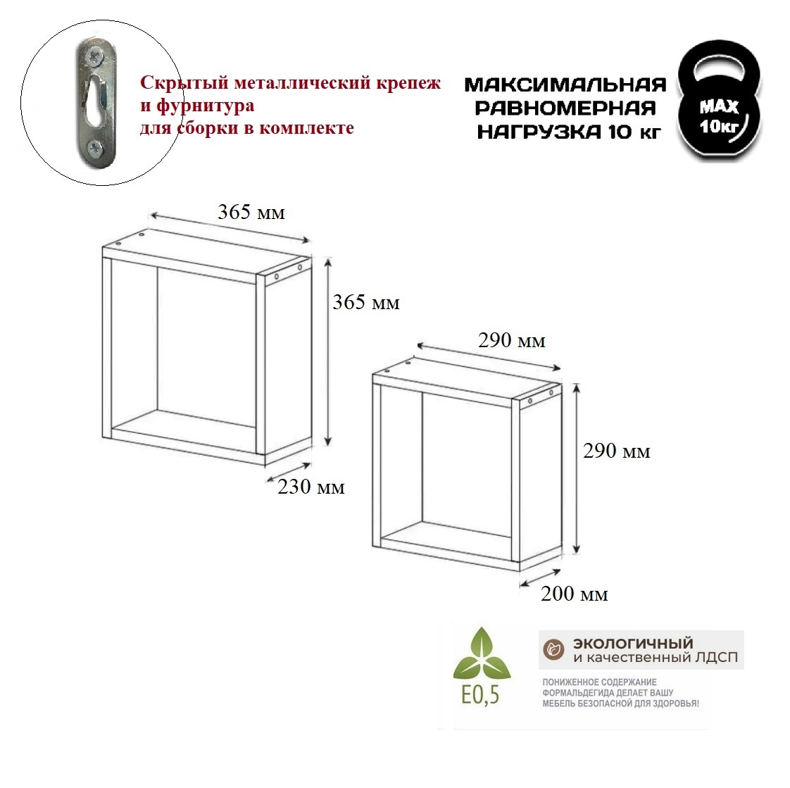 Габариты большой полки: ширина 365, глубина 230, высота 365 мм