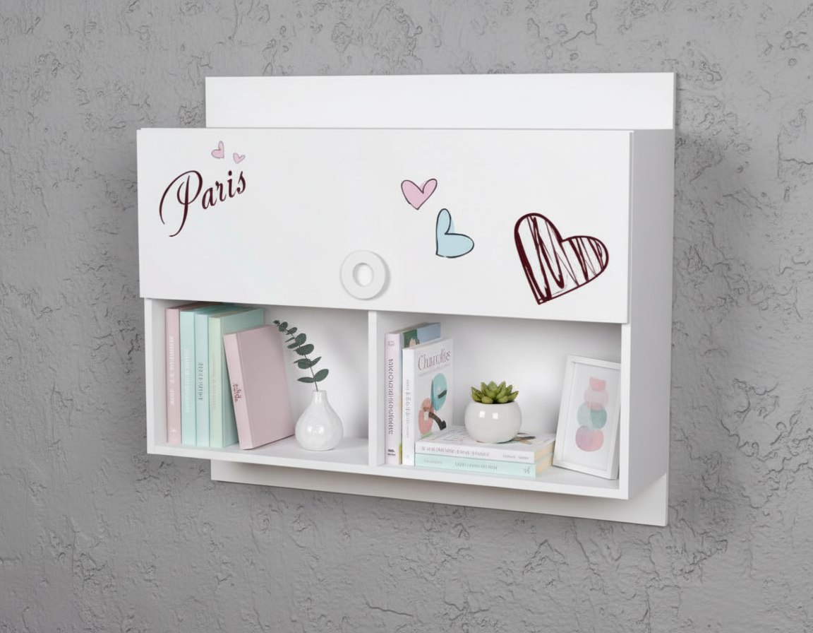 Полка выполнена из сертифицированного, качественного, экологически чистого ЛДСП Е0,5 в белом цвете с принтом.