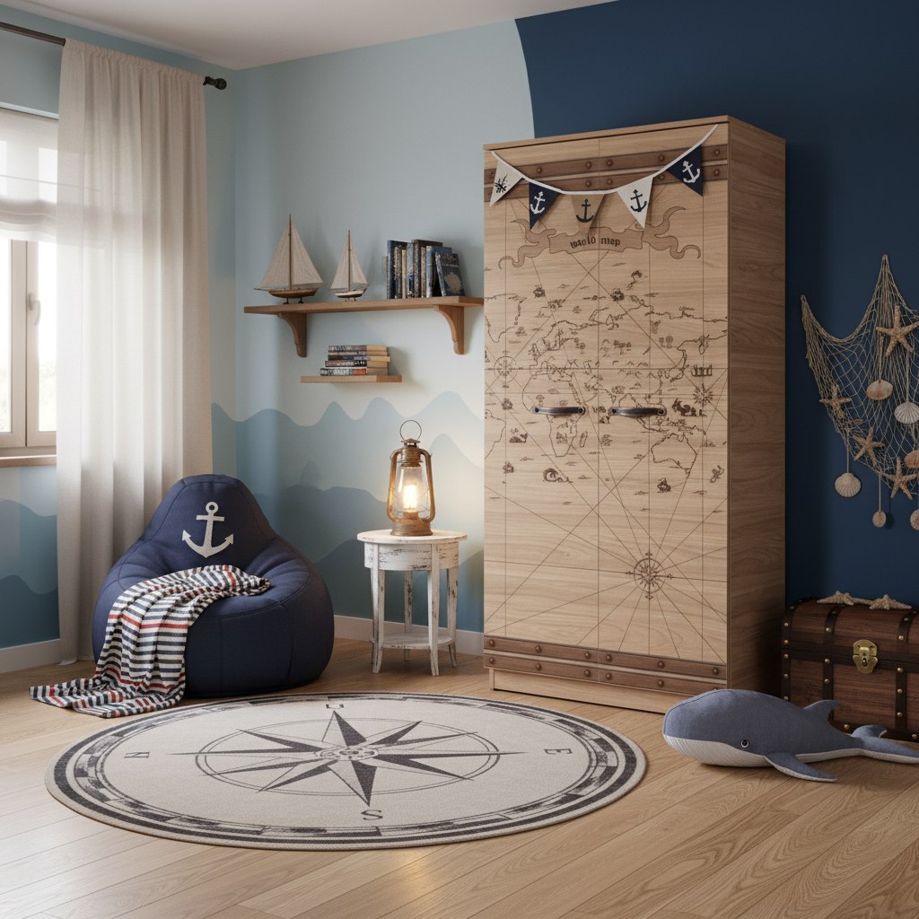 Шкаф выполнен из сертифицированного, качественного, экологически чистого ЛДСП Е0,5 в цвете "швейцарский вяз" с дизайнерским принтом на фасадах.