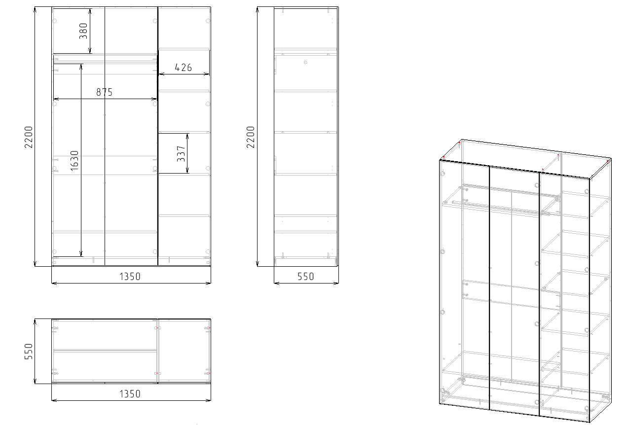 Внутри шкафа находятся 8 отделений, что позволяет разместить большое количество вещей.