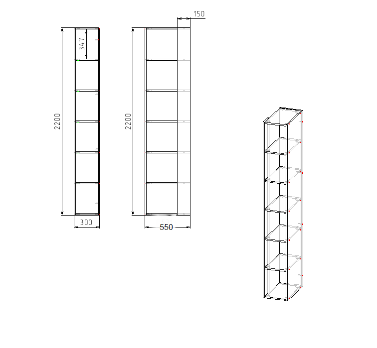 Стеллаж служит прекрасным торцевым завершением для шкафа или пенала.