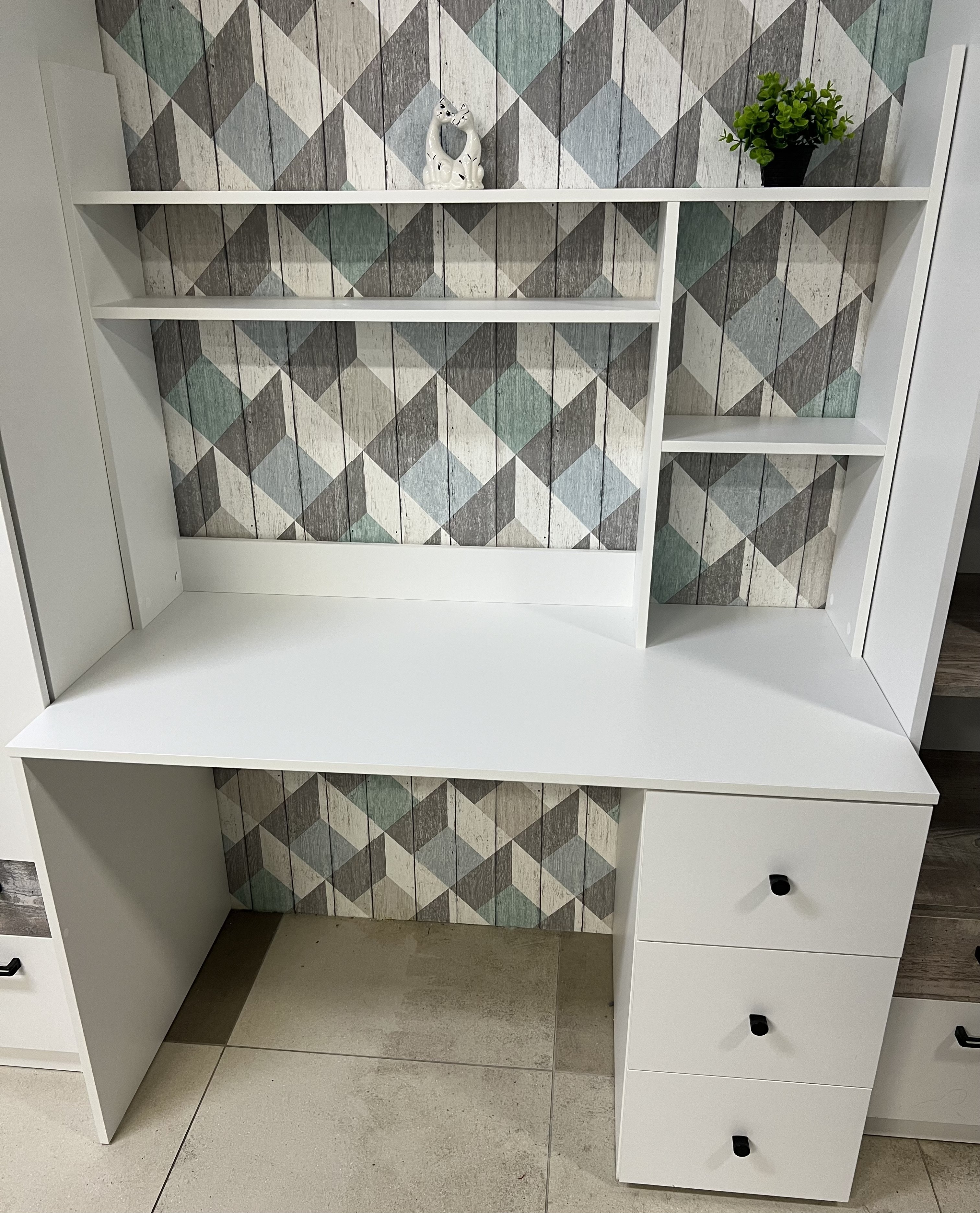 Практичный и удобный стол займет немного места в комнате и в тоже время позволит разместить учебники, любимые книги и игрушки.