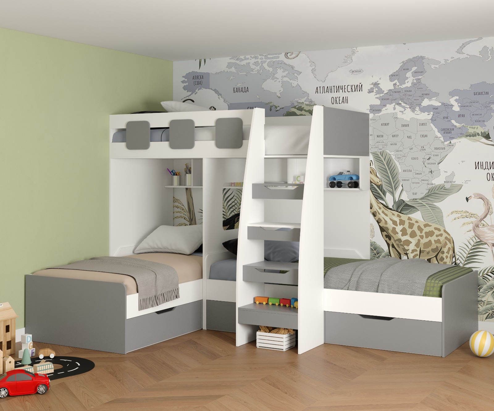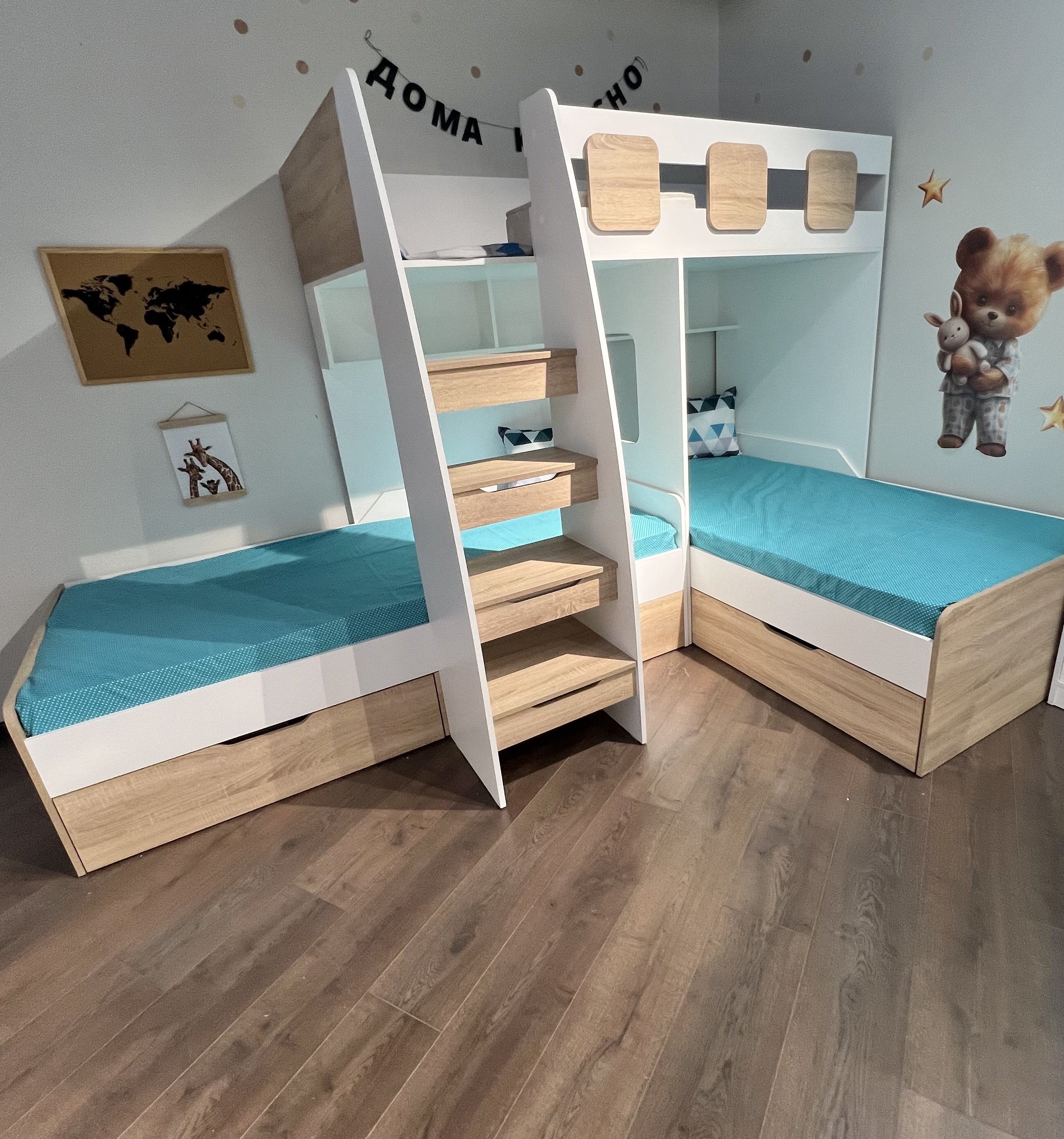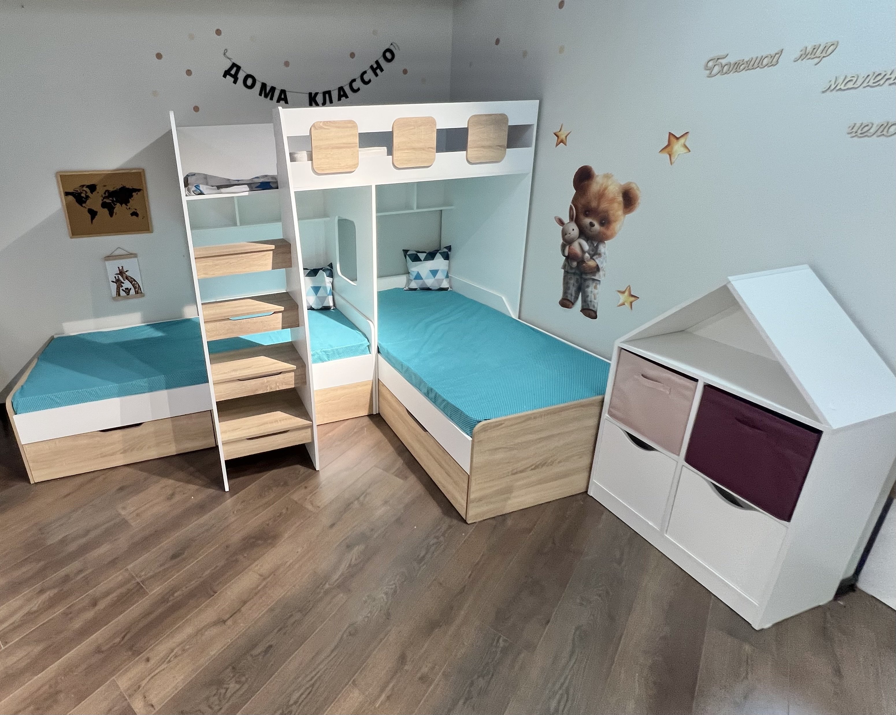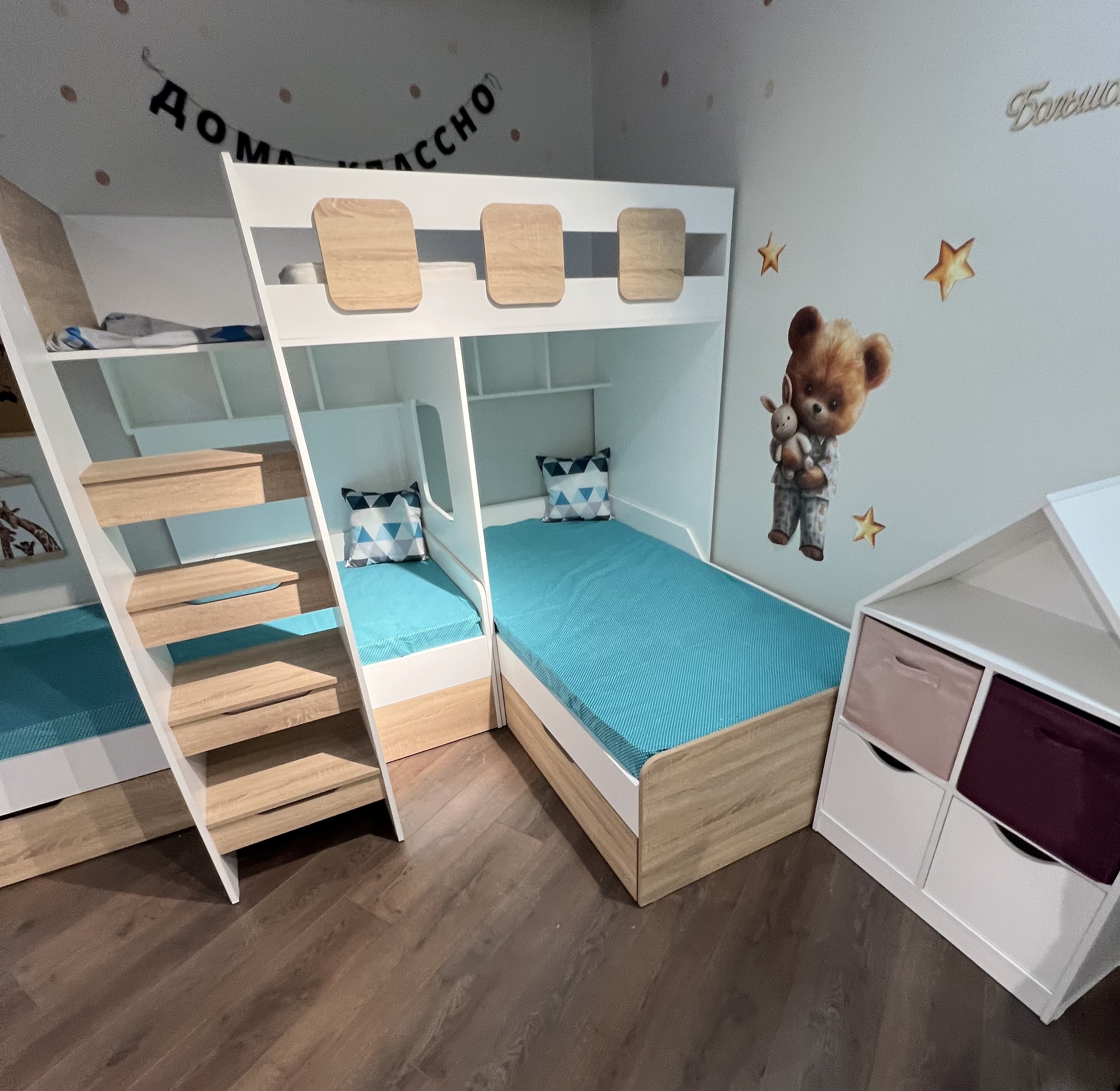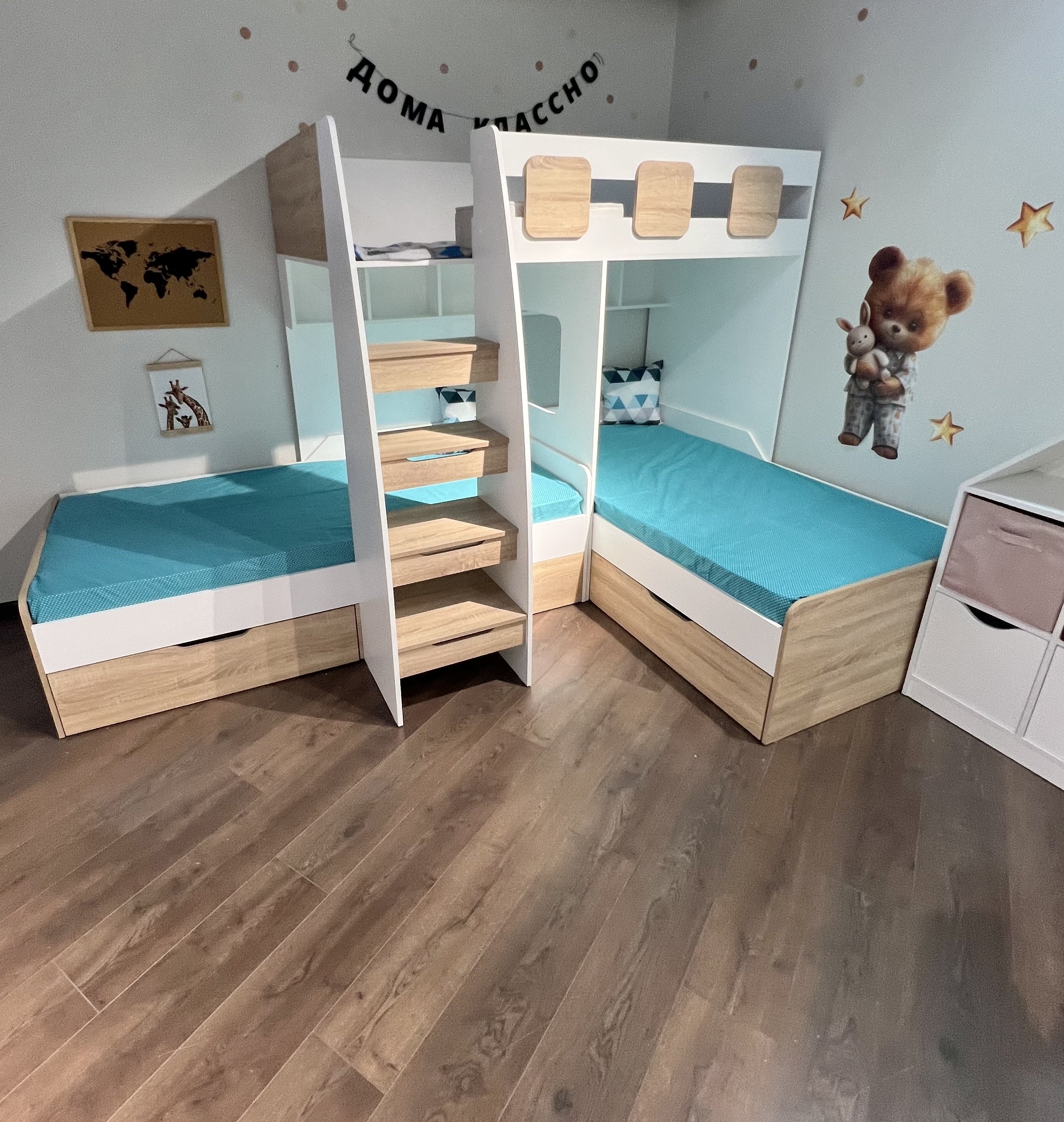Основание кроватей – прочный настил ЛДСП, который позволяет ребенку спать на ровной поверхности, что важно для детской спины.